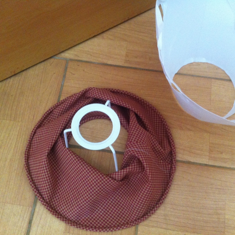 Stínidlo je vyrobené z přírodní tkaniny s veselým kostičkovaným dekorem.