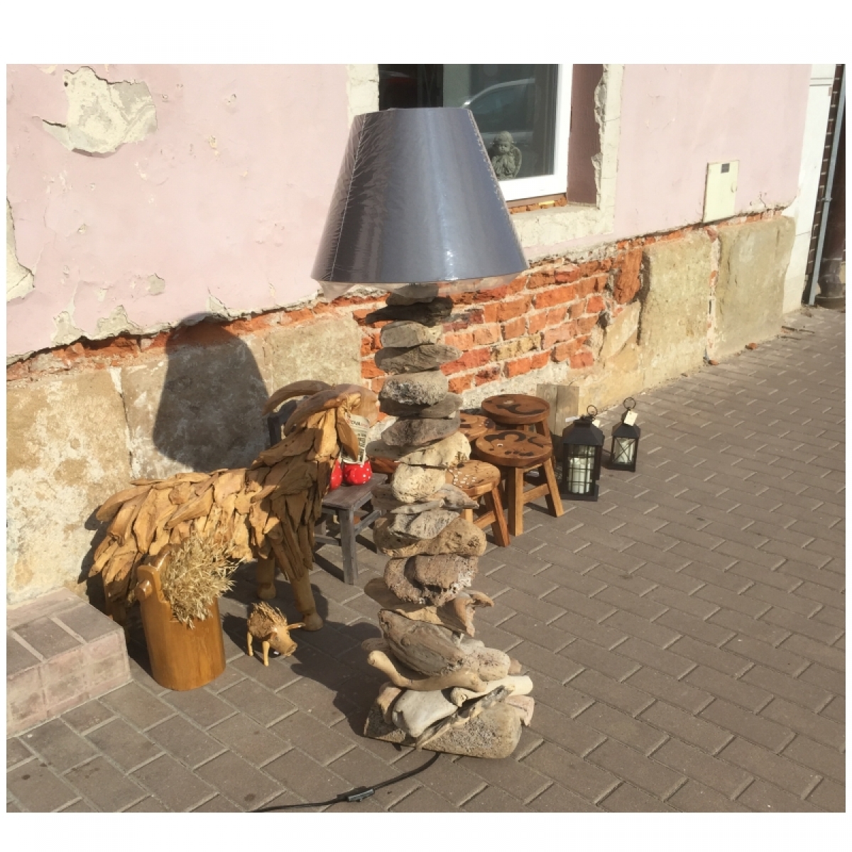 Každý kus stojací lampy je vyrábaný ručne zo starostlivo vybraných kúskov náplavového dreva.