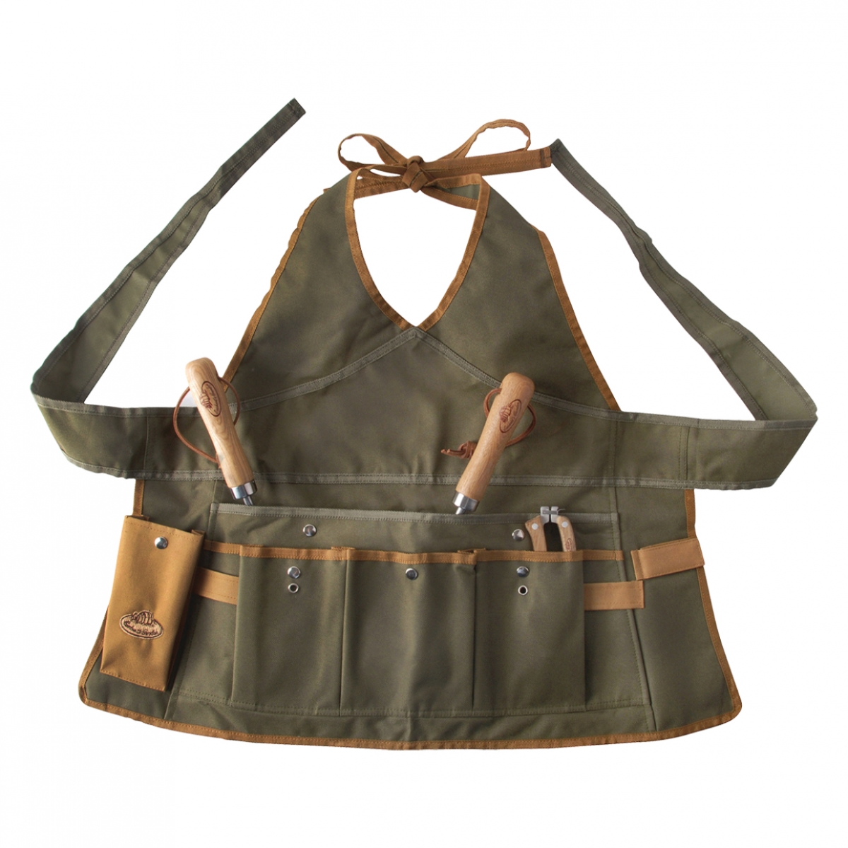 Táto zástera je vhodná pri práci na záhrade. Zástera je vybavená vreckami na uloženie záhradného náradia / potrieb a zaväzovacími popruhy na chrbte a za krkom. V tmavo zelenom farebnom prevedení s okrovými detailmi.