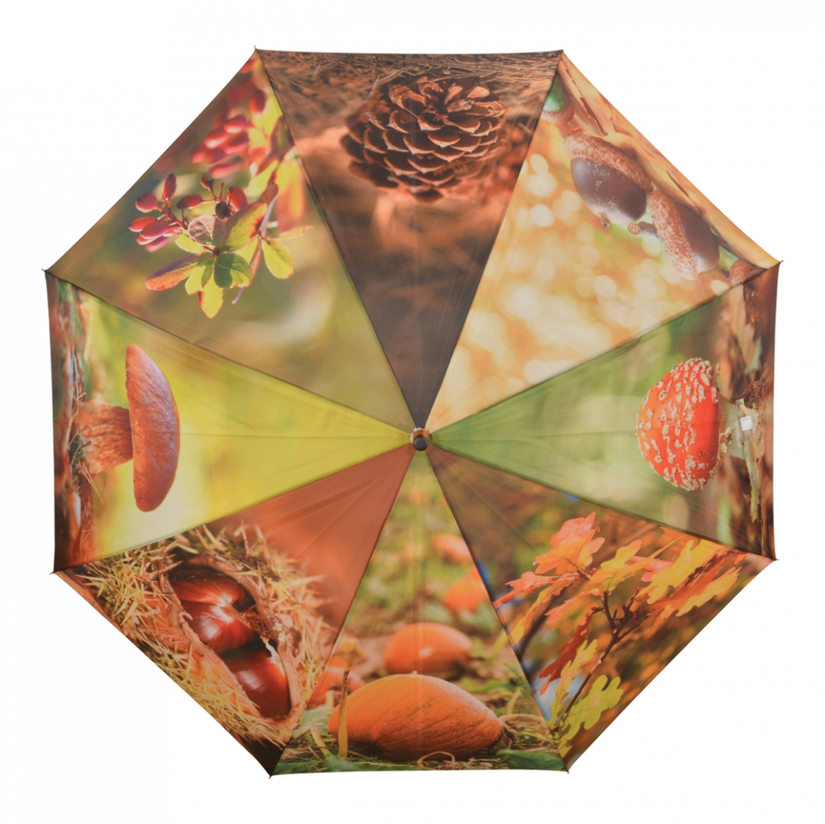V farebnom spracovanie s potlačou lesných plodov a listov.