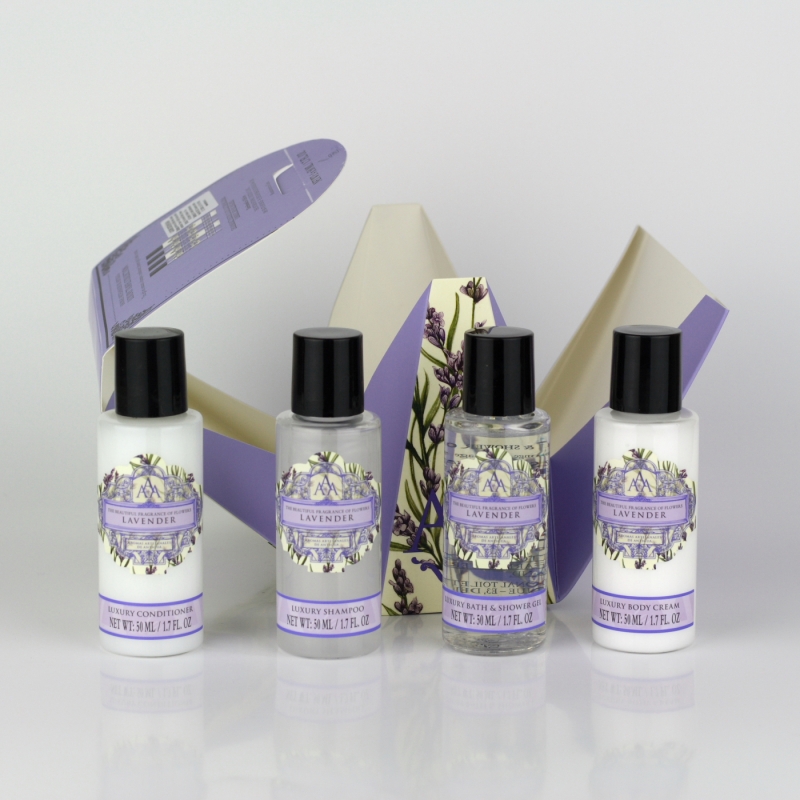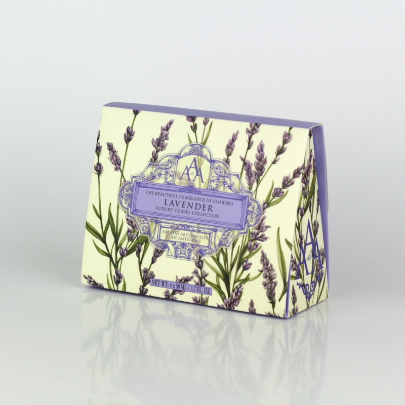 Darčeková cestovná sada kozmetiky levanduľa 4x50ml bude verným spoločníkom na cestách. Či už Vám, alebo vo forme darčeka Vašim blízkym.