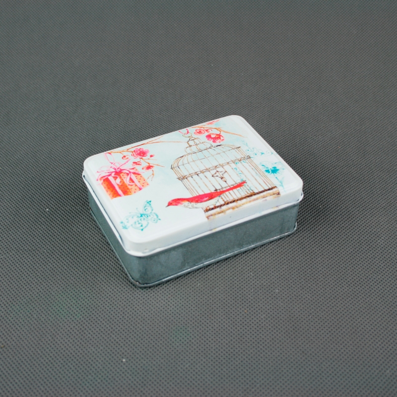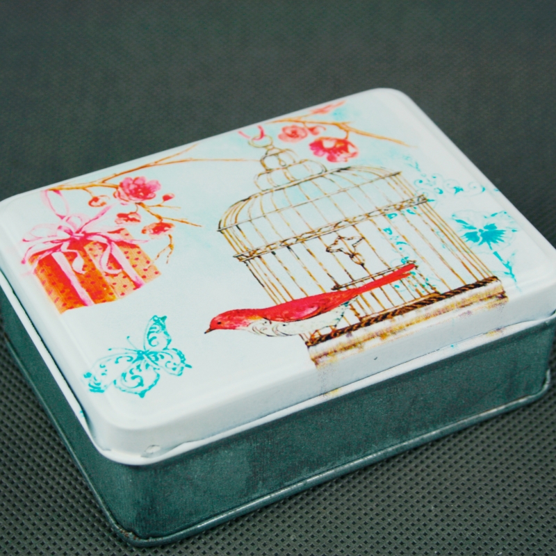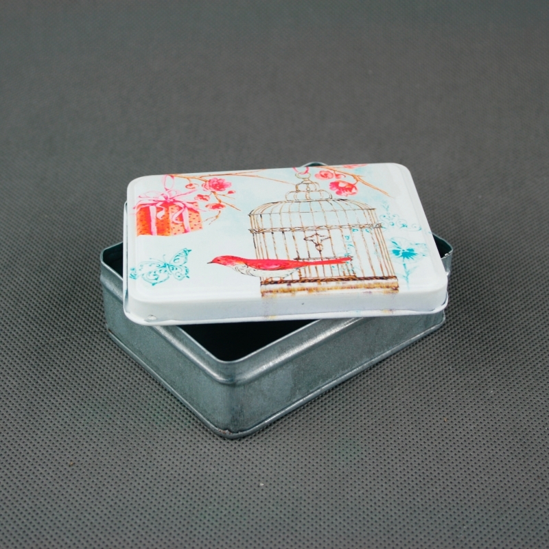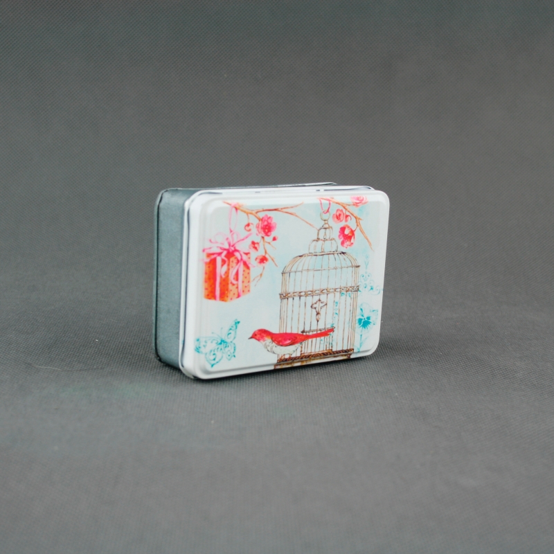 Darčeková krabička na šperky je výborným pomocníkom na úschovu bežným drobností. Môže slúžiť napríklad ako malá šperkovnica či krabička na cukríky. Na prednej strane je vyobrazená klietka s vtáčikom.