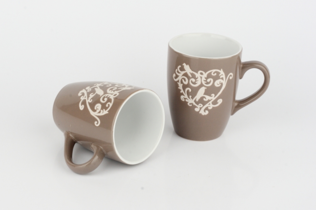 Keramické hrnčeky s motívom srdca a dvoma malými vtáčiky si obľúbite pre ich nápaditý dizajn a jemné prírodné tóny.