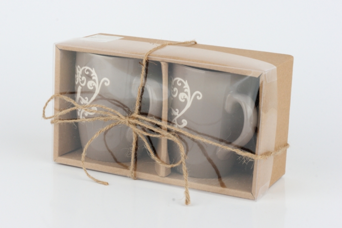 Uvedená cien za dva hrnčeky v darčekovej krabici s mašľou.