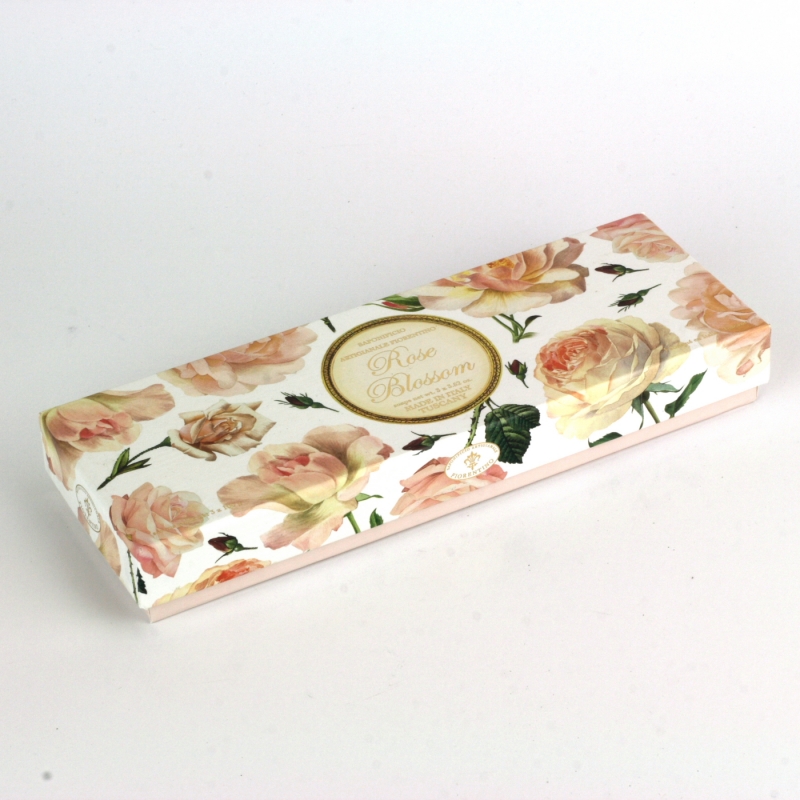 Darčekové talianskej mydlo ružové kvety 3x100g na prvý pohľad zaujme luxusným dizajnom darčekové krabičky, v ktorej sú uložené tri samostatne balená guľatá mydýlka.