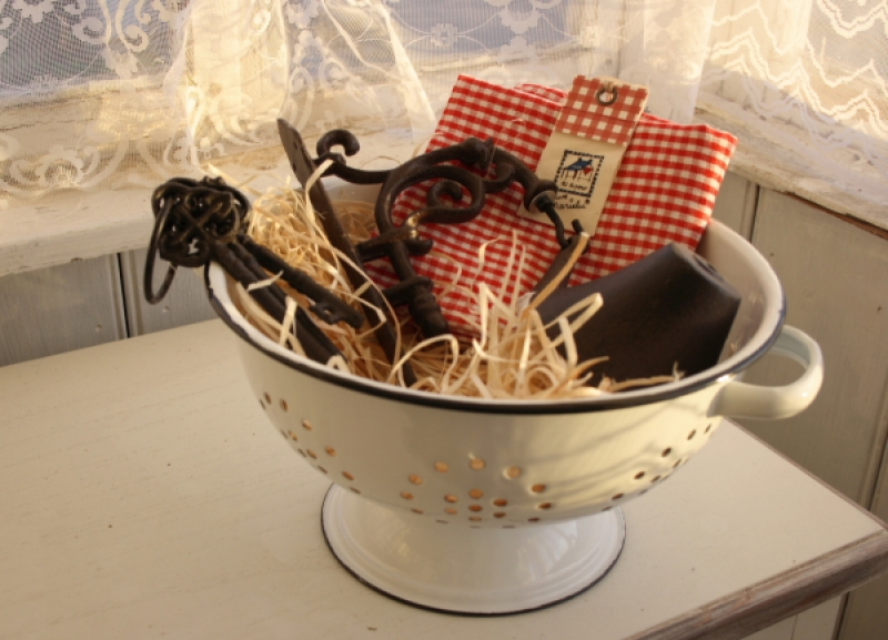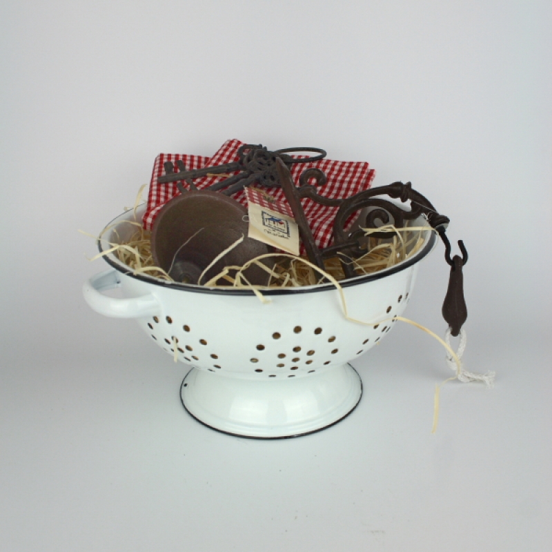 Ak máte vo svojom okolí niekoho, kto si každú voľnú chvíľu odchádza užiť na malú chalúpku pri lese, nenašli by ste vhodnejšie darček, než tento. Štýlový darčekový set obsahuje smaltovaný cedidlo do kuchyne, utierku v klasickom červenom károvanom prevedení, liatinový zväzok kľúčov k vstupu do domu a liatinový zvonček na konzolu, ktorý ohlási príchod každej návštevy.