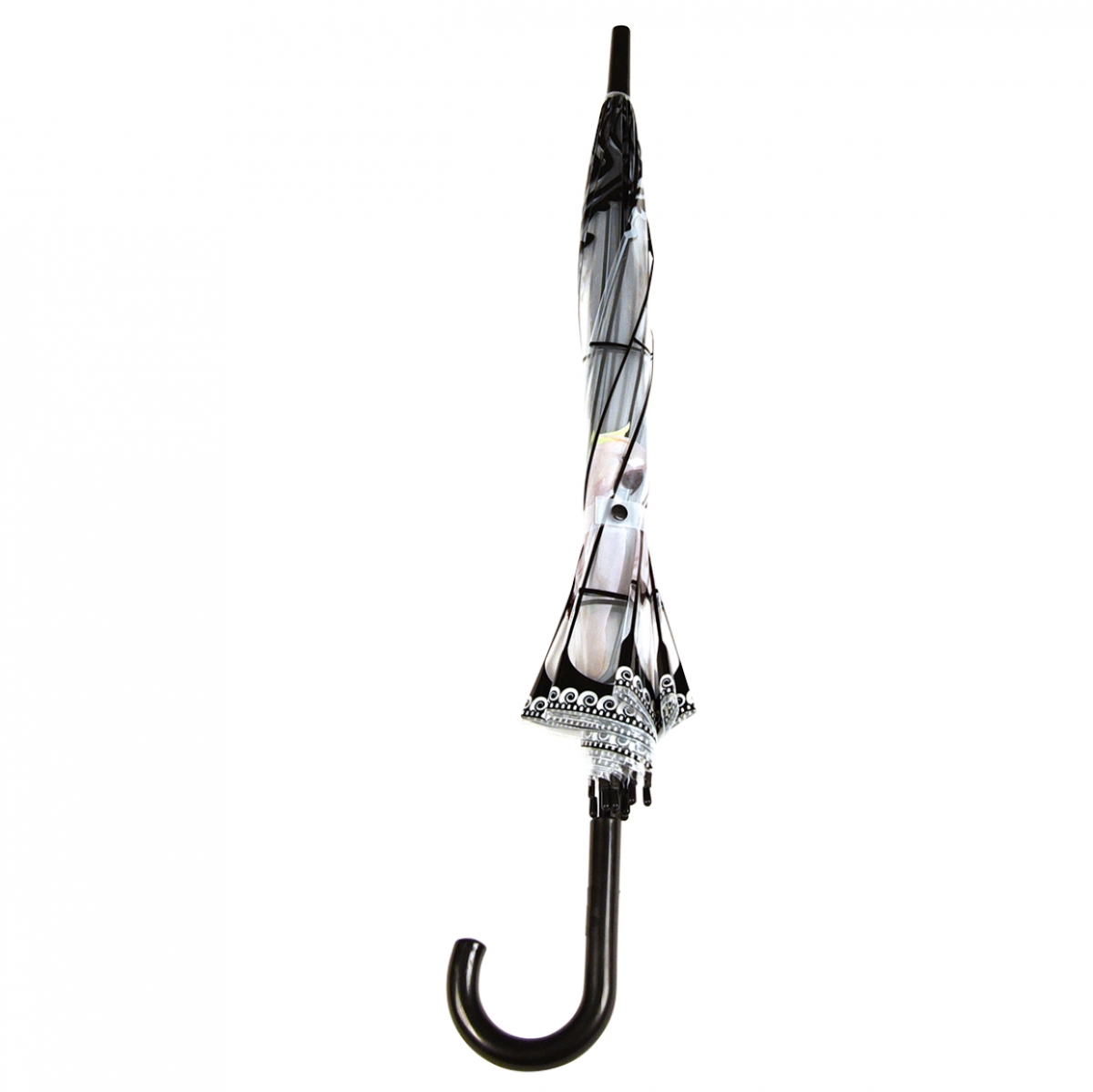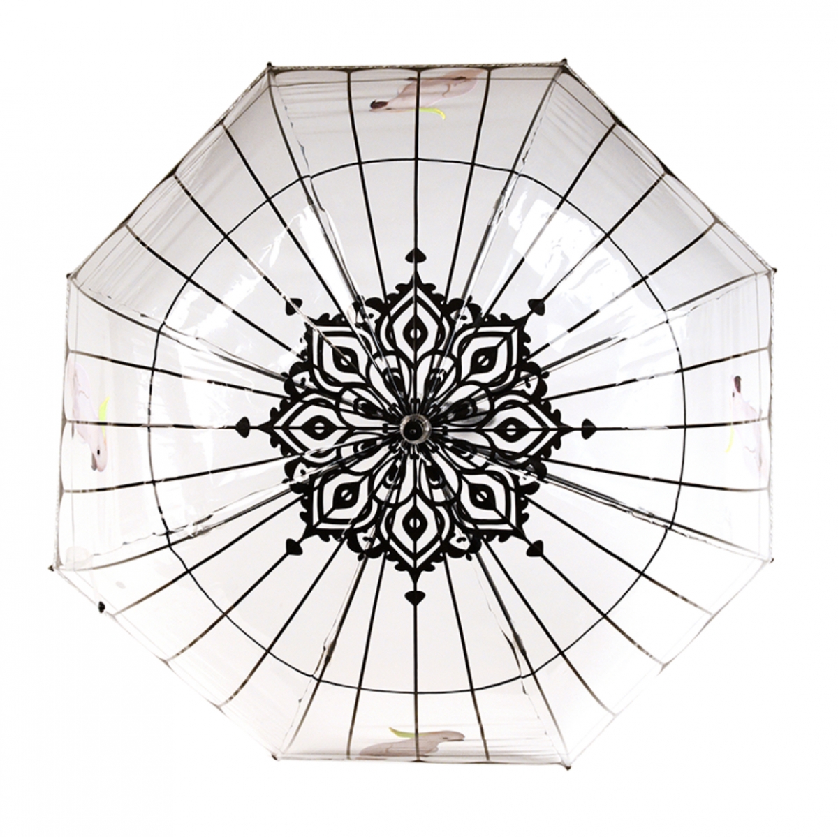 Dáždnik s motívom vtáčie klietky je priehľadný a priestranný aj na široké ramená dospelého muža.