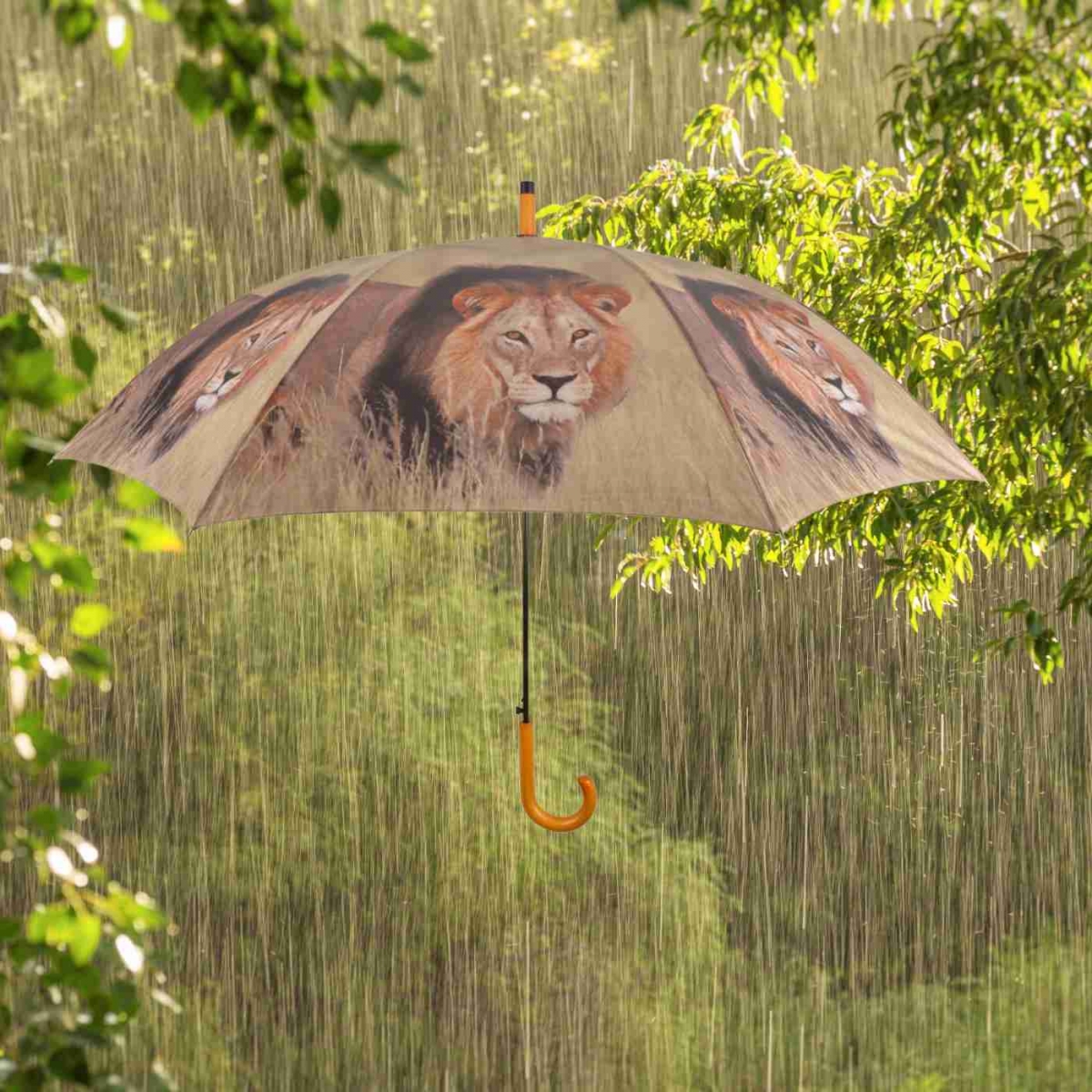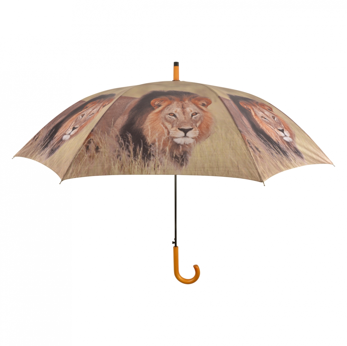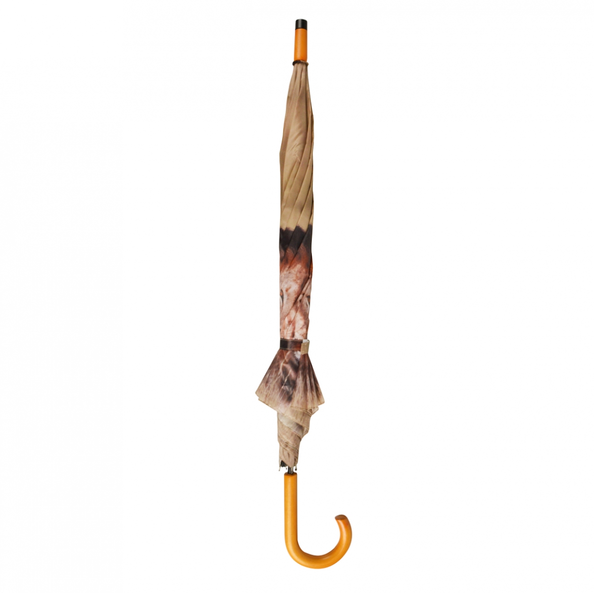 Dáždnik s kovovou rukoväťou opatrenú dreveným úchopom.