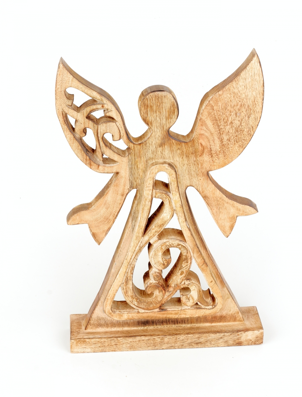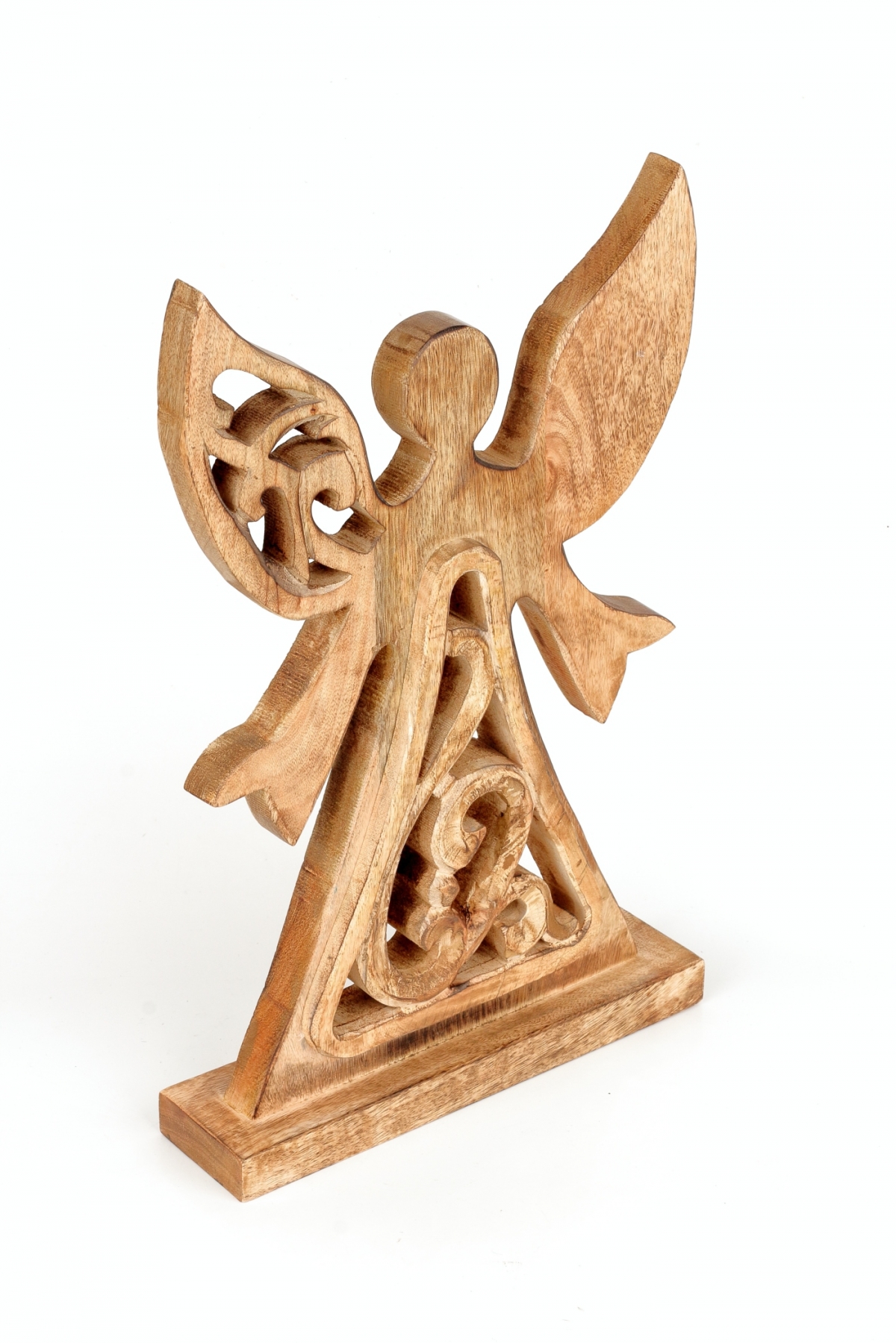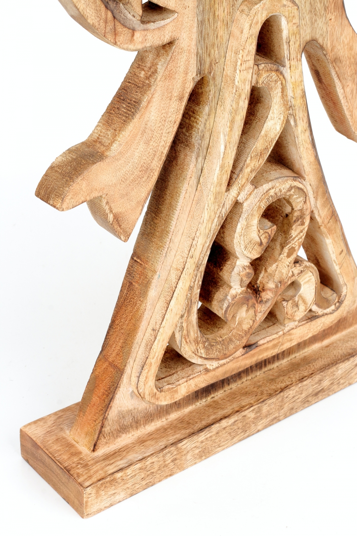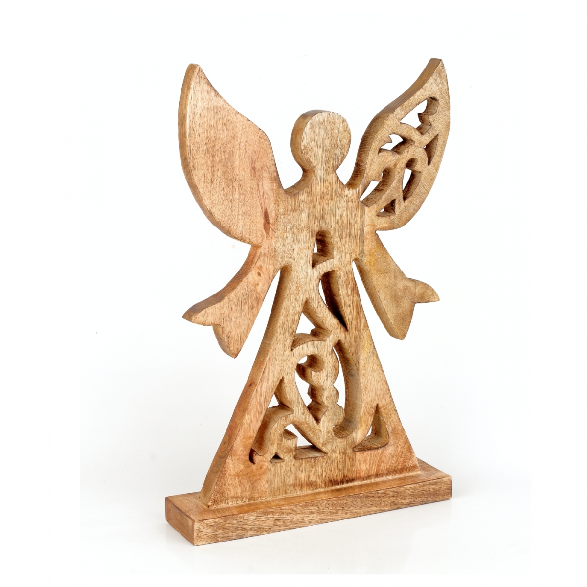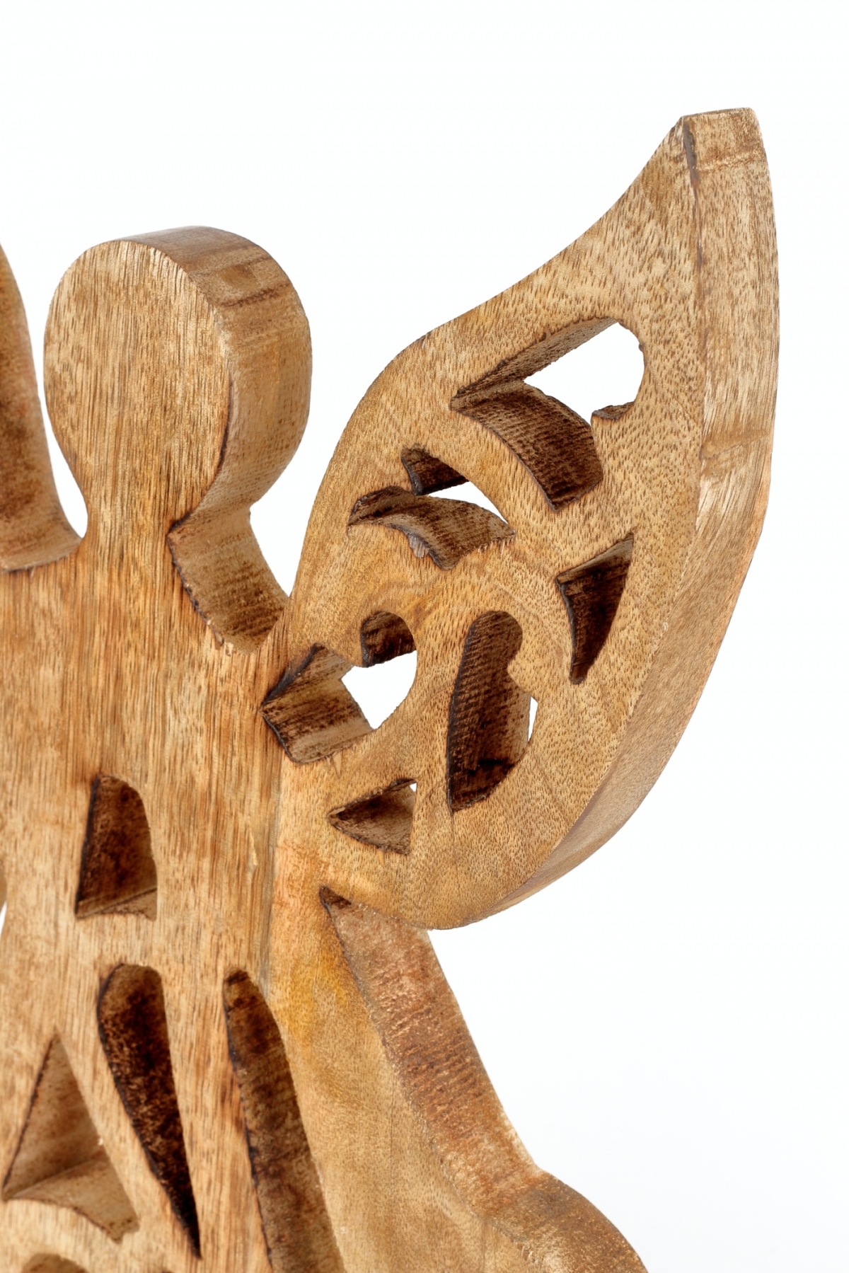 Dekorácia do bytu vyrezávaný anjel je vyrobený z mangového dreva. Jeho siluety nepôsobia charakteristicky vianočne. Preto môže v interiéri slúžiť celoročne.
