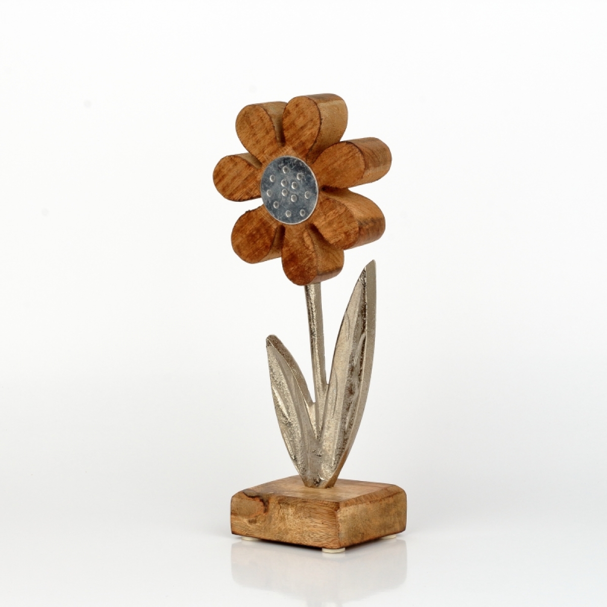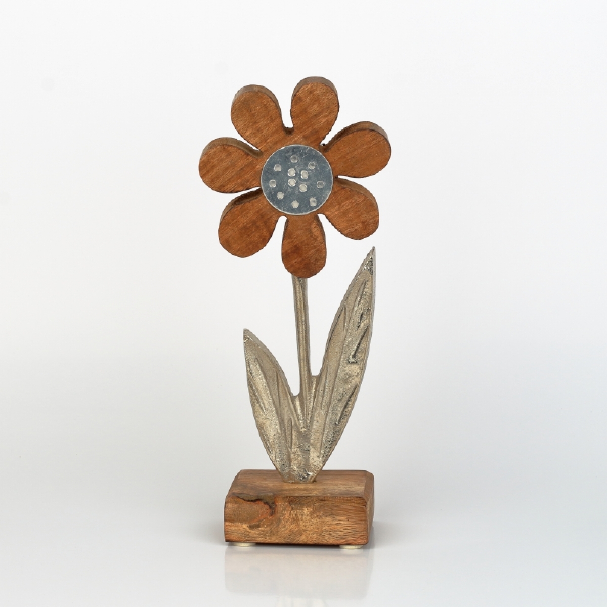 Dekorácia do bytu kvetina hliník drevo 24cm