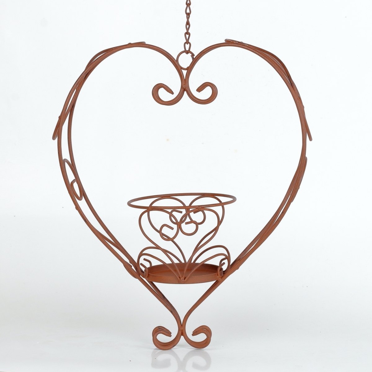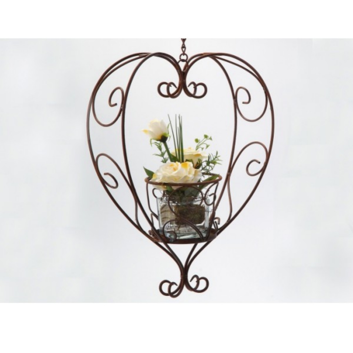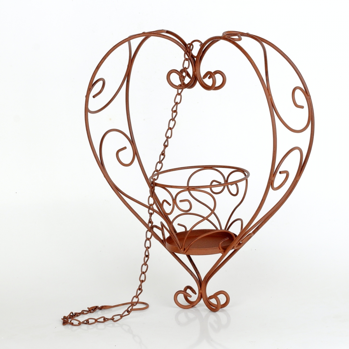 Dekorácia do bytu srdce na kvetinu je vyrobená z ohýbaného hrdzavého drôtu.