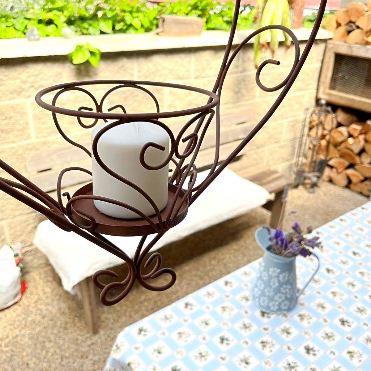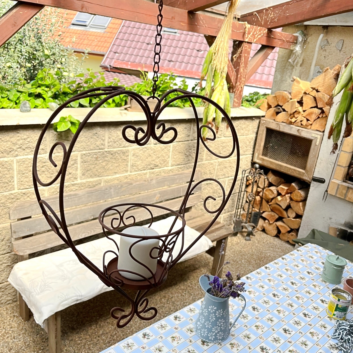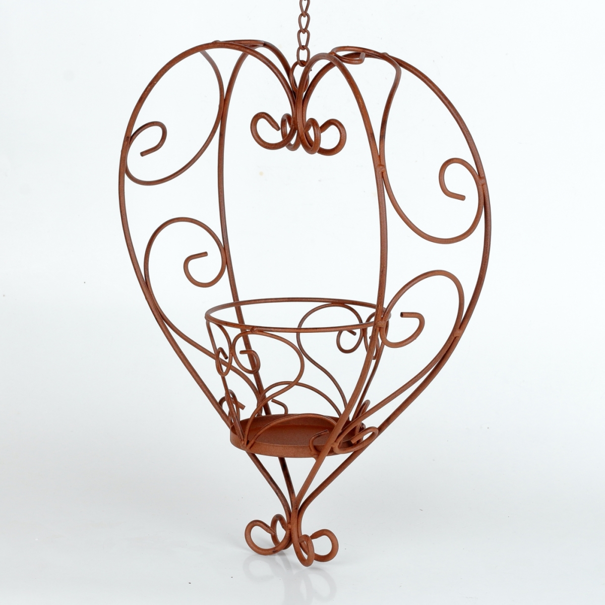 Dekorácia do bytu srdce na kvetinu je vyrobená z ohýbaného hrdzavého drôtu.