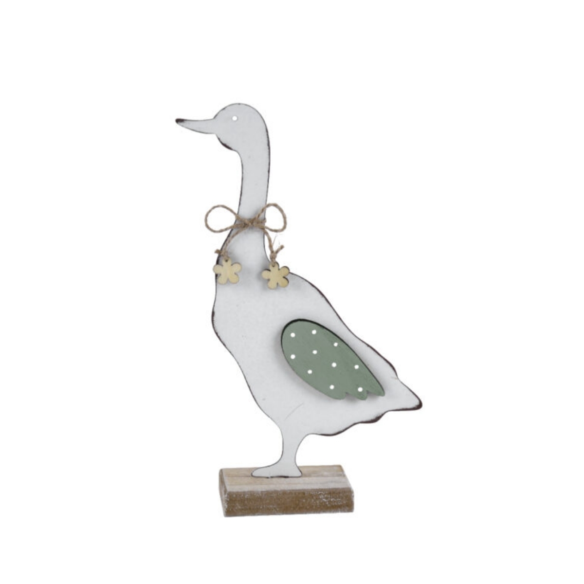 Dekorácia na chalupu kačica pastelová biela 25cm