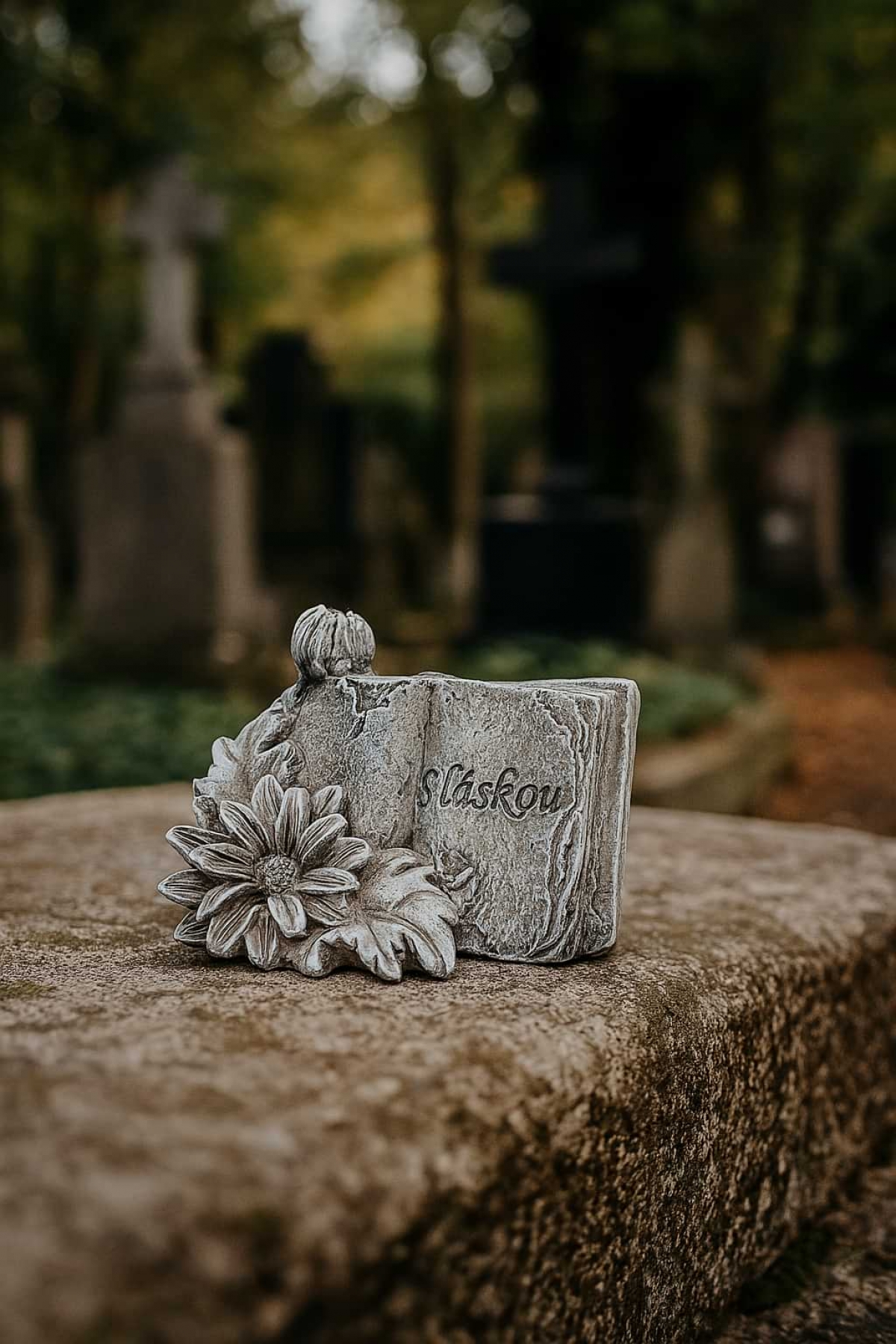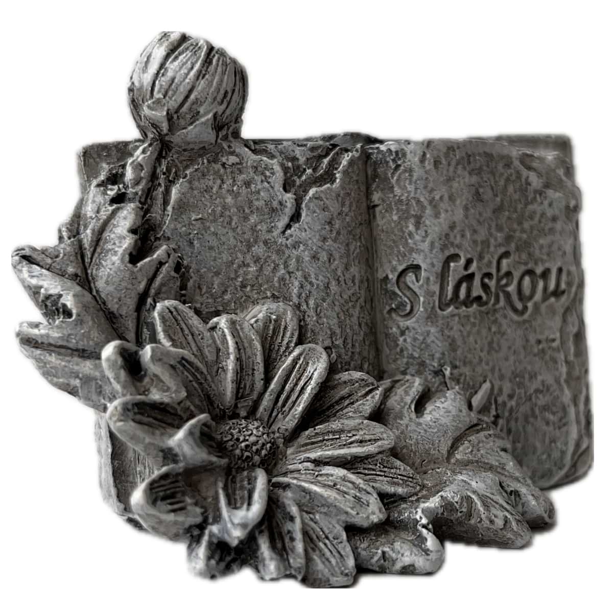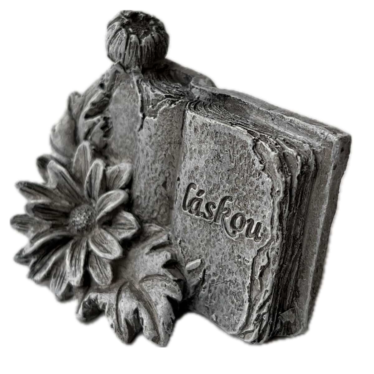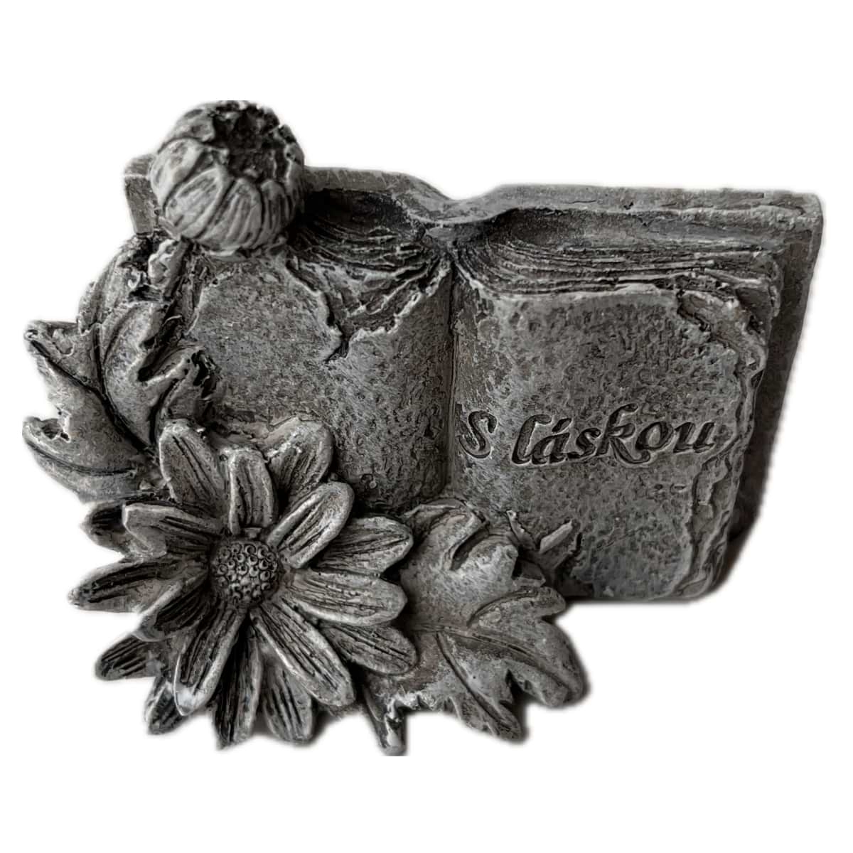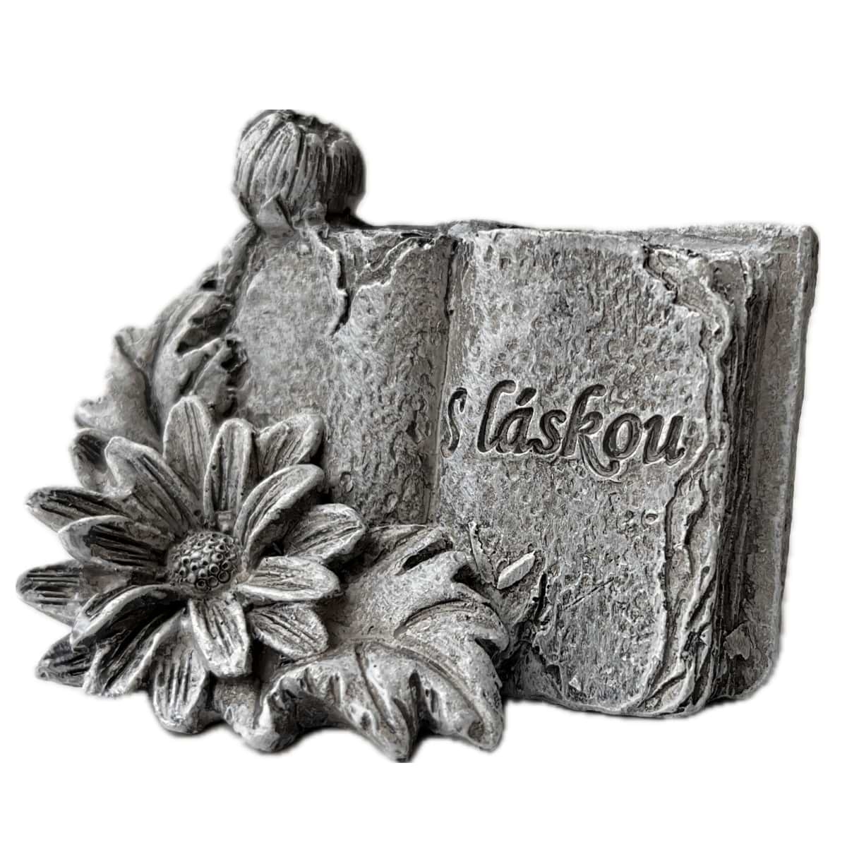 Dekorácia na hrob – kniha s kvetinou S Láskou 5 x 7 x 4 cm