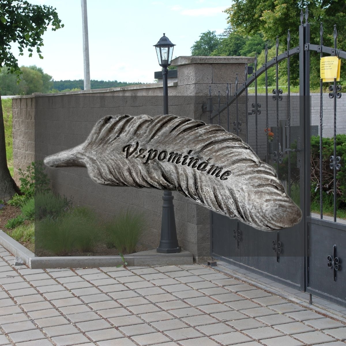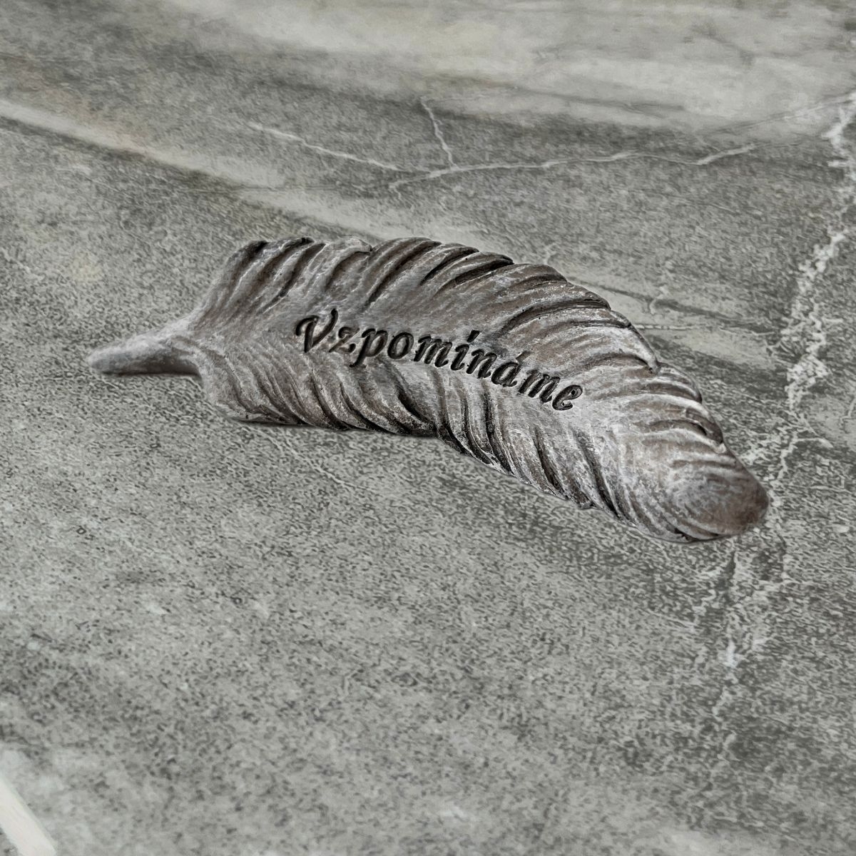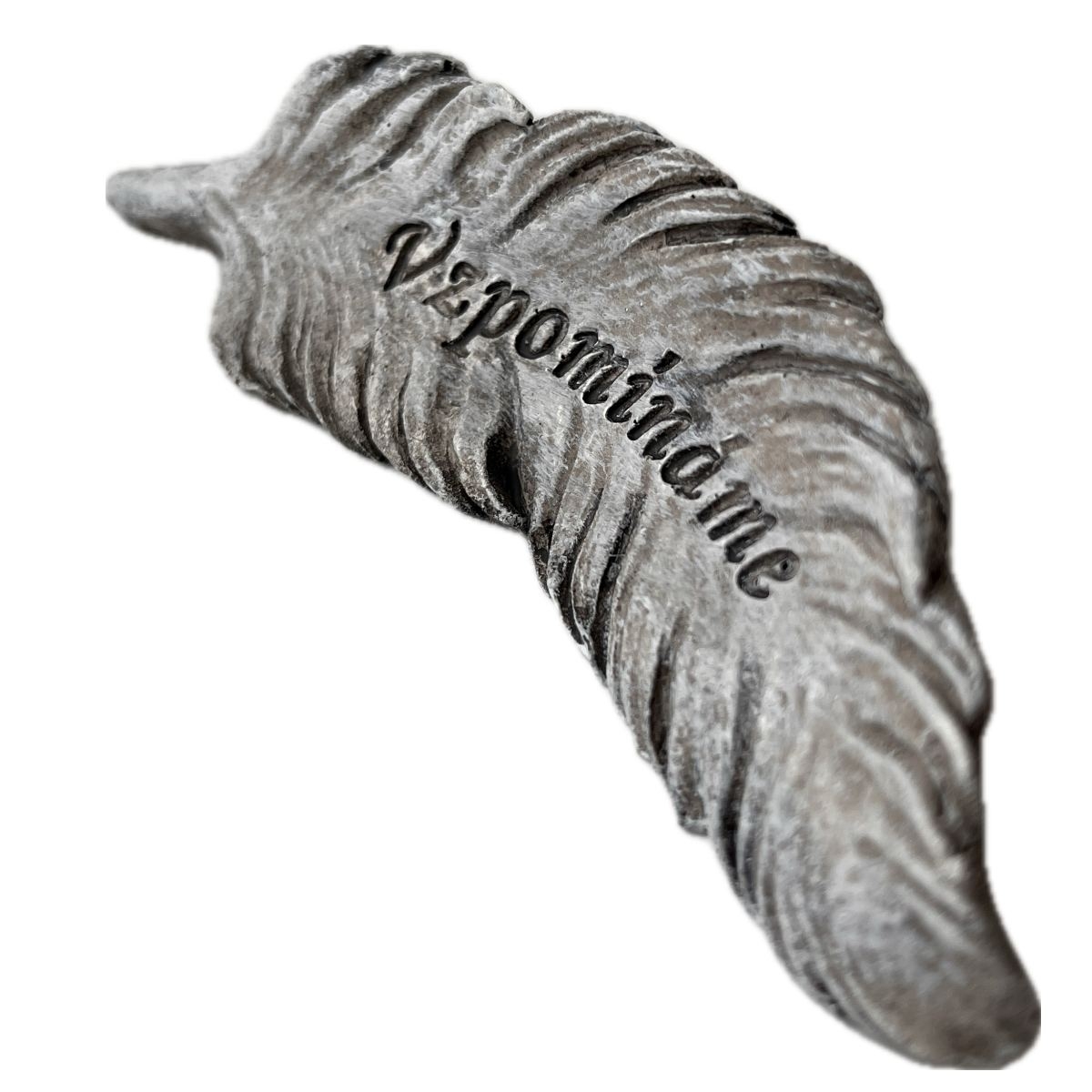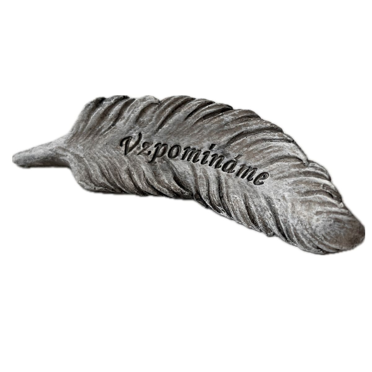 Dekorácia na hrob — polyresinové pierko s nápisom Vzpomínáme