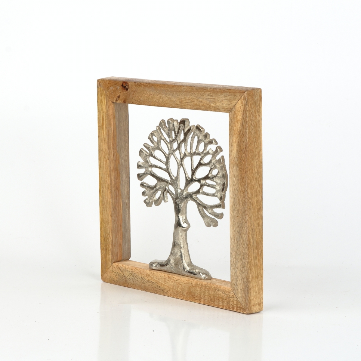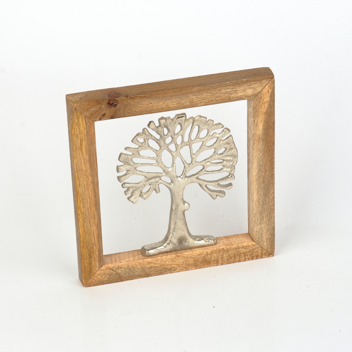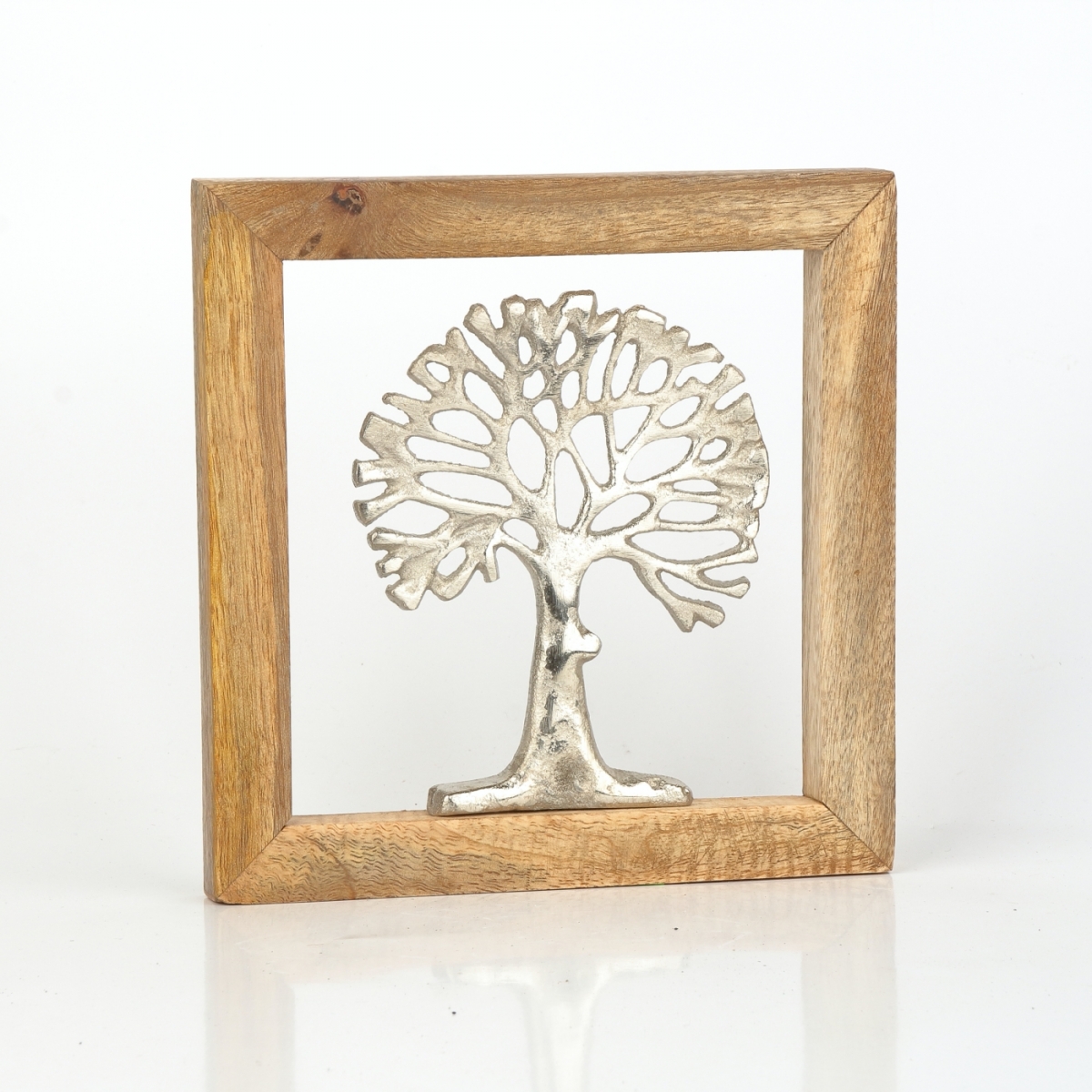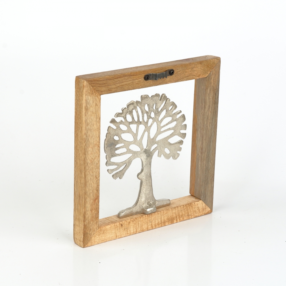 Dekorácia na komodu v rámčeku z dreva. Hliníkový strom umiestený do dreveného rámčeka, môžete použiť ako dekoráciu na komodu, v prevedení stromu, alebo srdce, ale rámček je súčasne opatrený očkom na zavesenie na stenu.