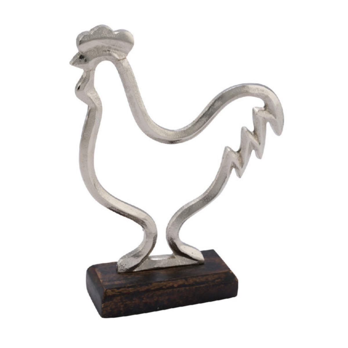 Ak hľadáte jarnú dekoráciu na podstavci, čistého tvaru a prevedenia, ktorá sa bude hodiť aj do moderne zariadeného obydlia, prezrite si tohto strieborného kohútika. Jeho telo je tvorené iba obrysovou líniou, vyvedenou v striebornom kove.