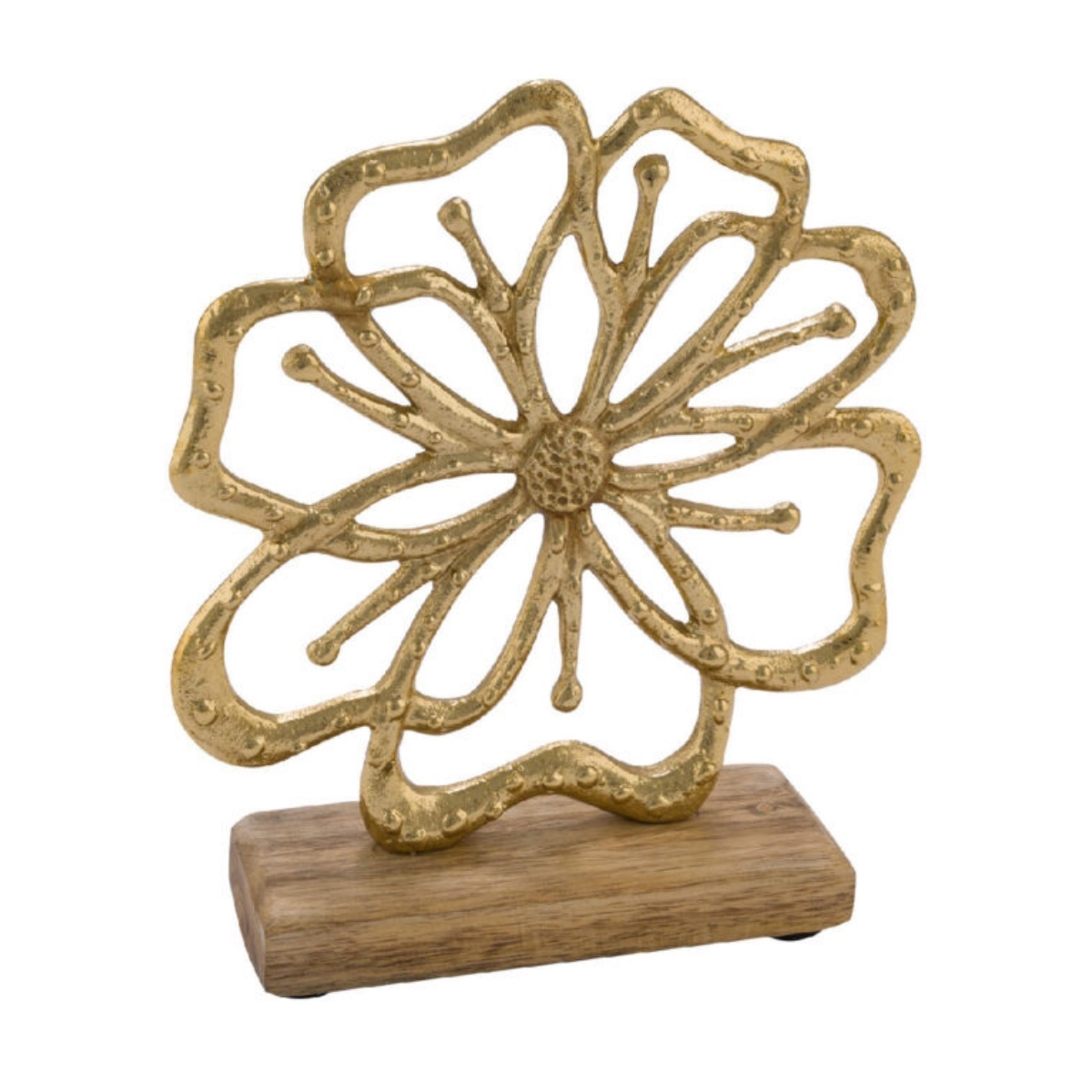 Dekorácia na podstavci zlatý kvet 15,8 x 5 x 18,6 cm
