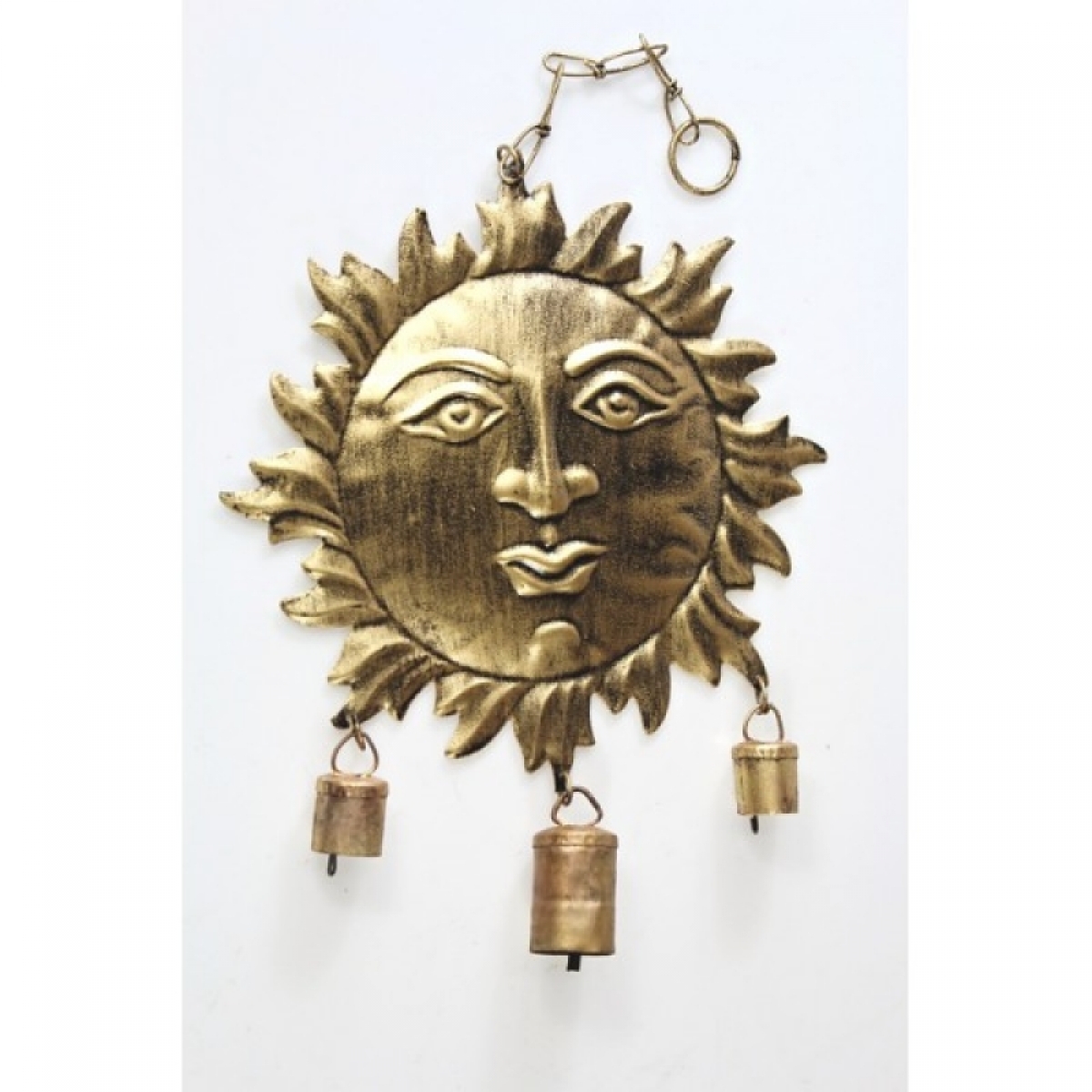 Dekorácia na stenu - slnko s tromi zvončekmi, ktoré vo vetre vydávajú zvuk podobný rolničkám.