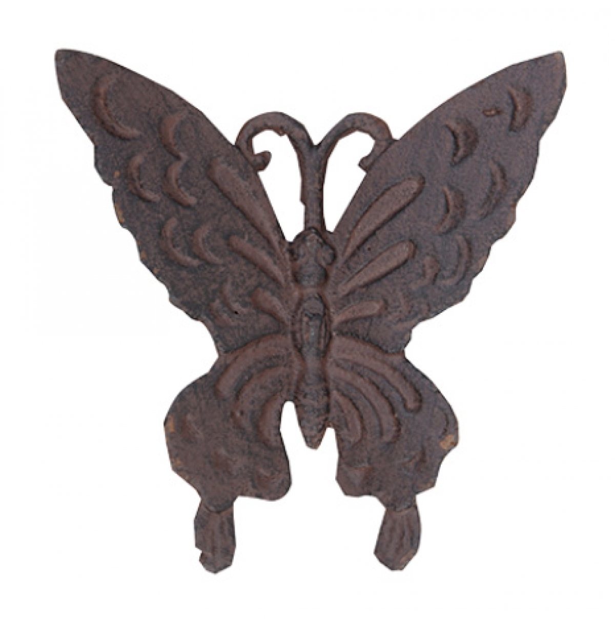 Dekorácia na stenu motýľ je vyrobená ručne, technikou odlievanie, čo mu prepožičiava charakteristický vzhľad a hnedo červenú patinu. Na zadnej strane je vybavený háčikom na zavesenie.