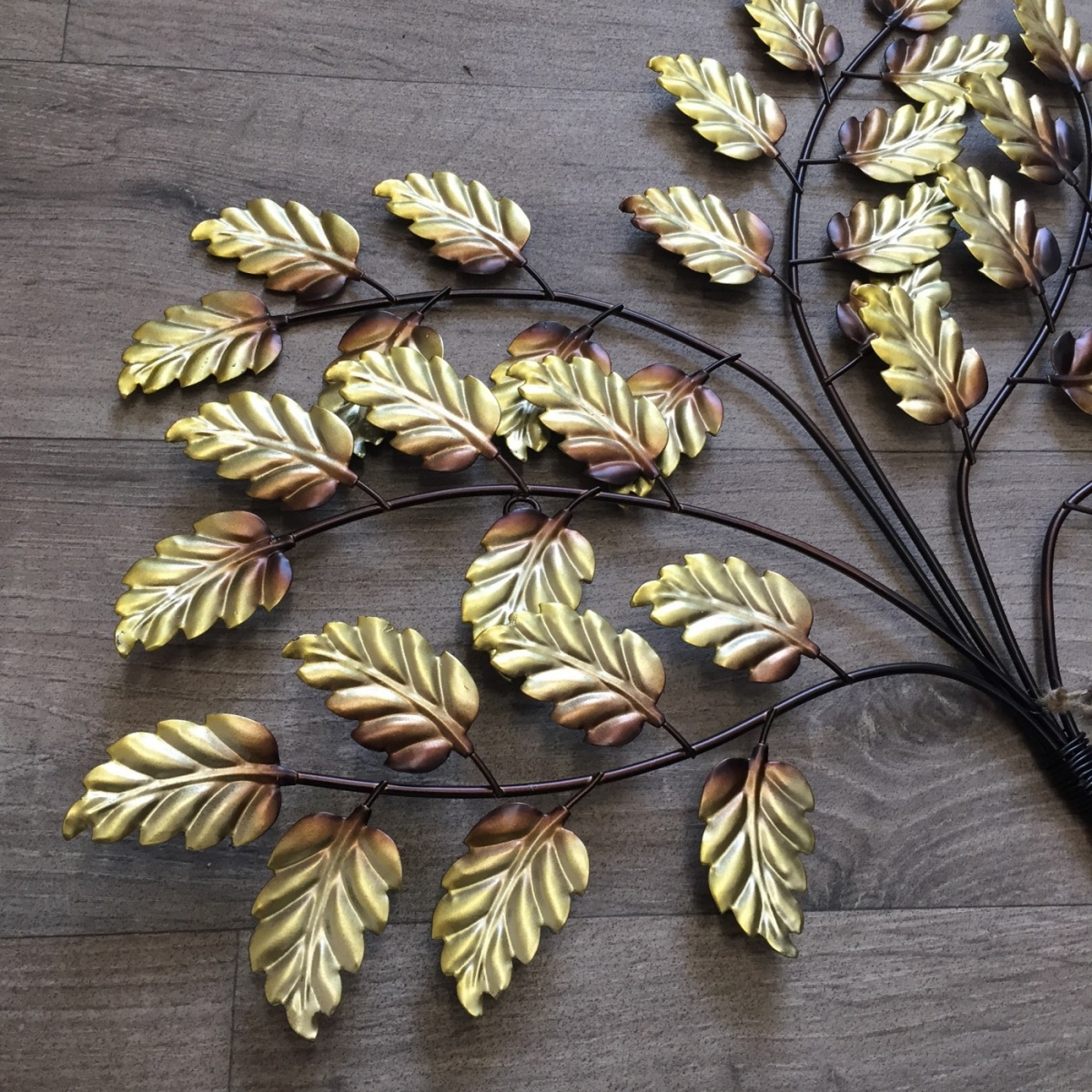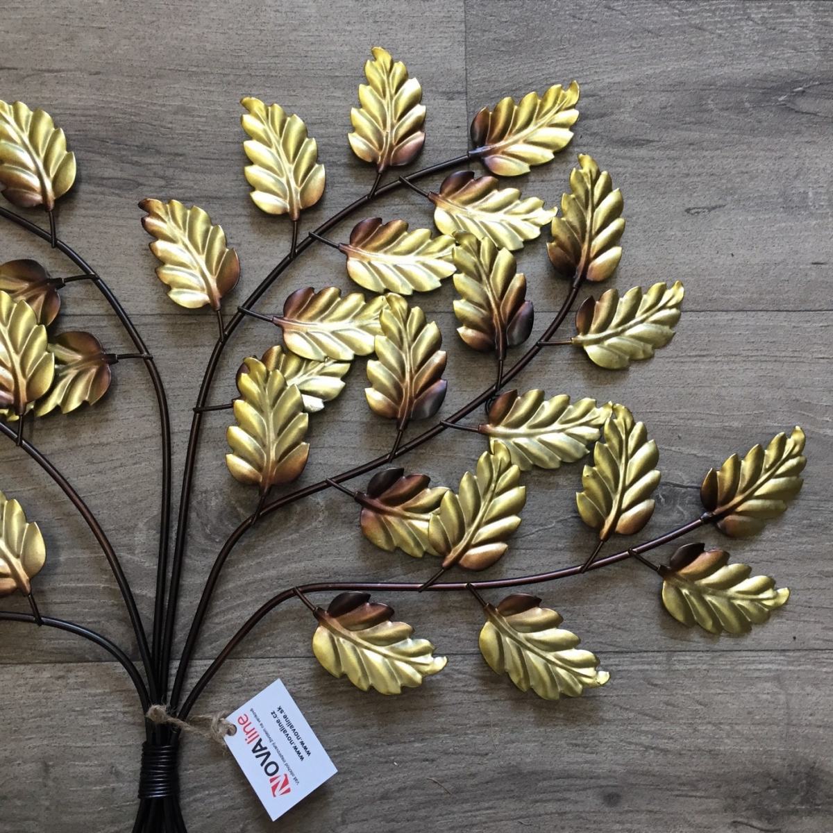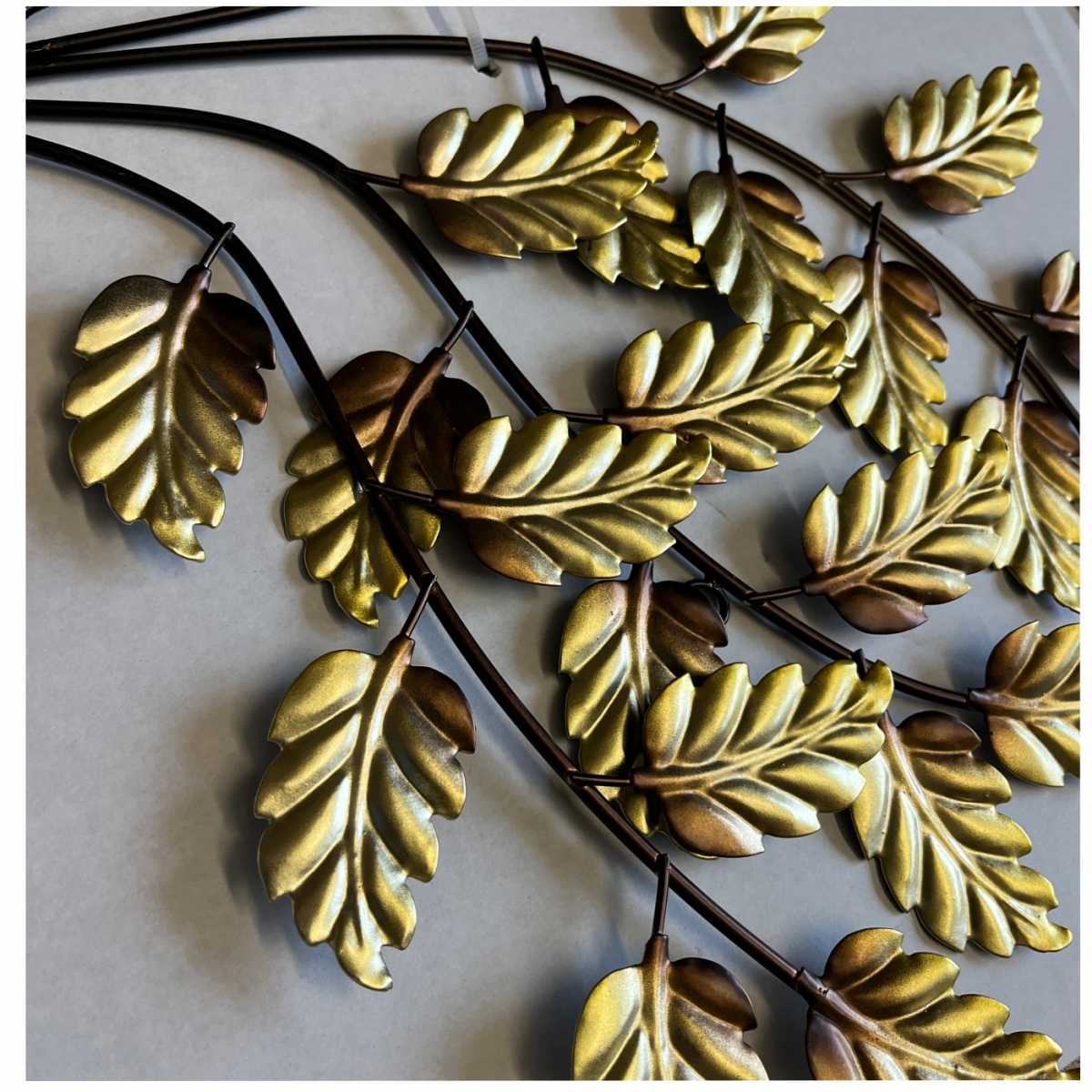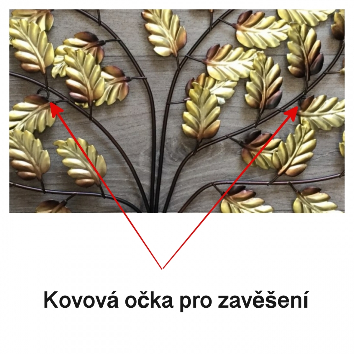Dekorácia na stenu v podobe stromu je vyrobená z tvrdého drôtu. Kovové, zlatohnedé lístky spolu s hnedým kmeňom stromu budú robiť parádu na akejkoľvek stene. Vetvy aj lístky sú tvarovateľné, takže už záleží len na vašej fantázii, do akej podoby si strom upravíte.