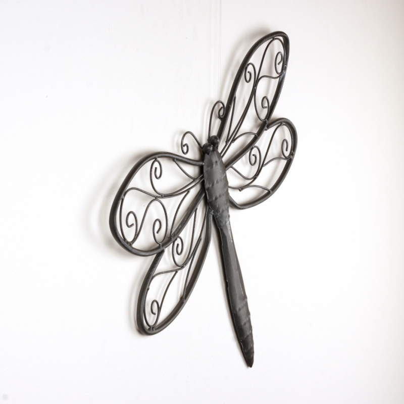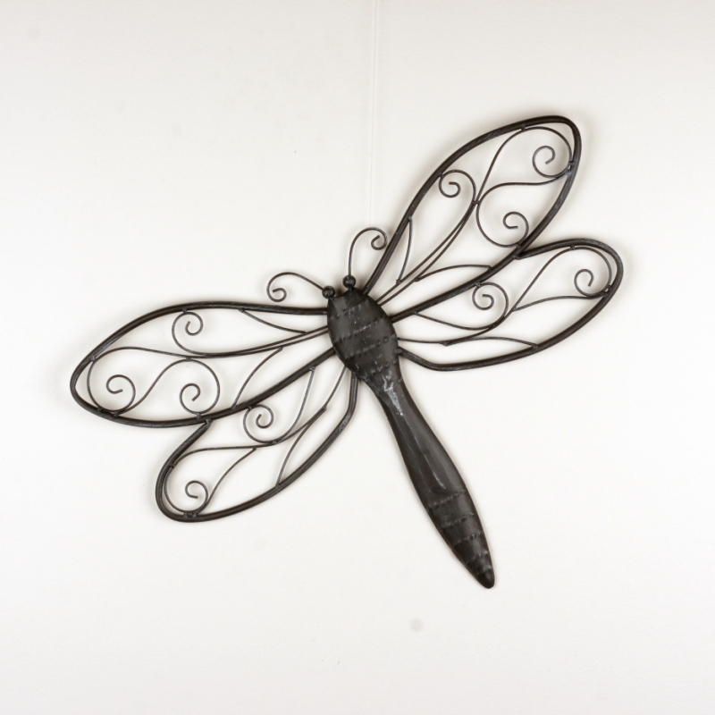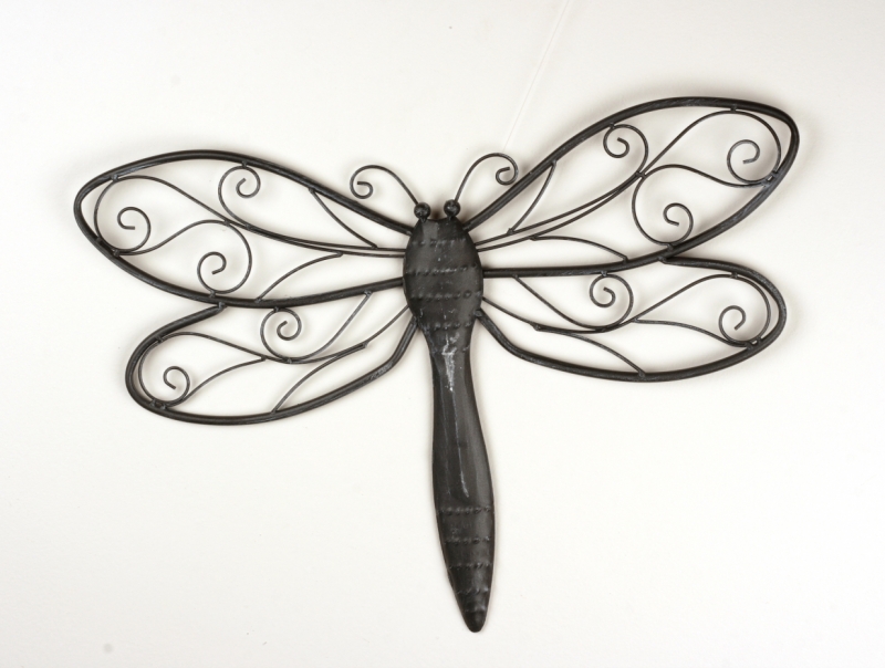 Dekorácia na stenu vážka tmavý kov 60cm