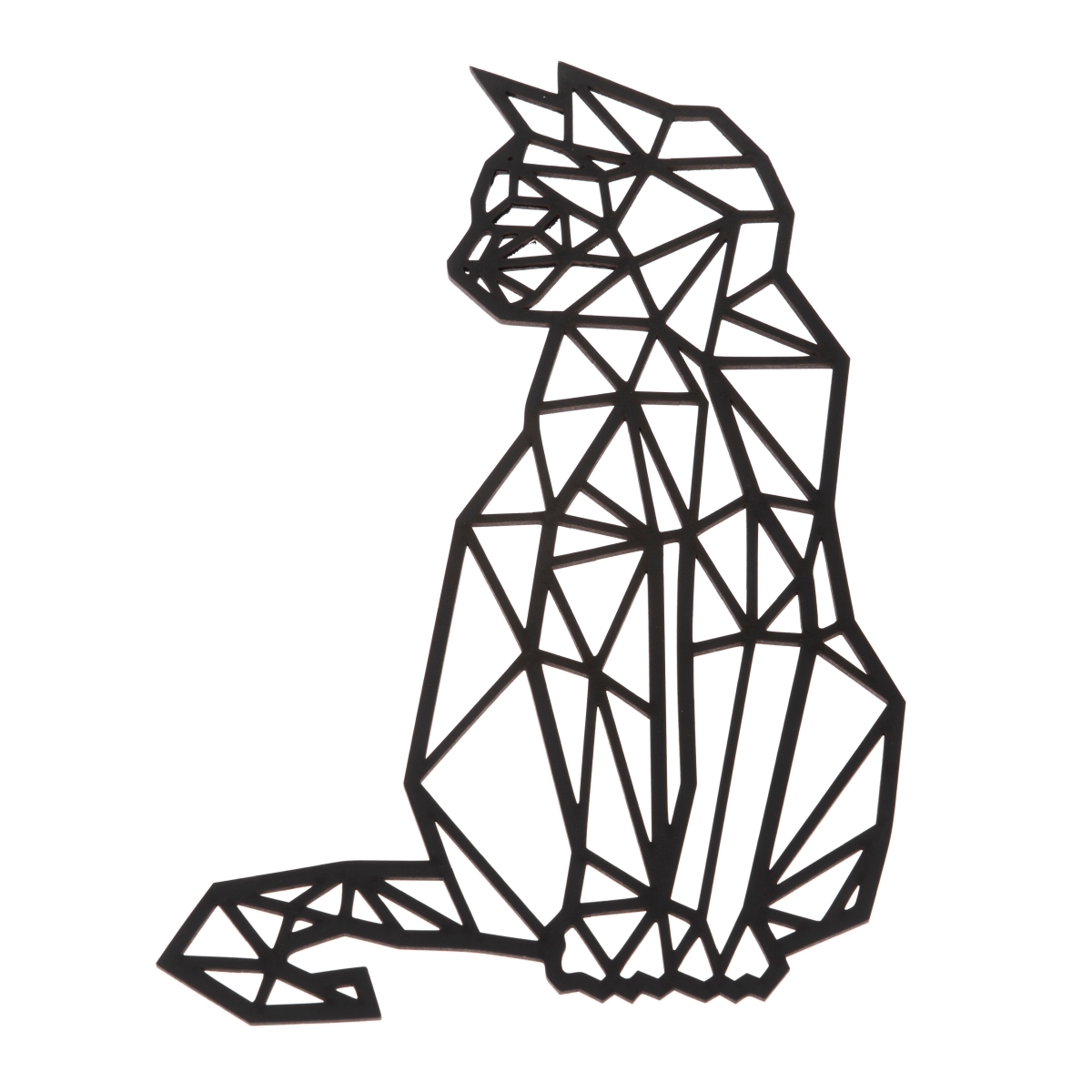 Dekorácia na stenu z dreva v podobe sediacej mačky je vyrobená z ľahkého dreva s čiernym náterom.