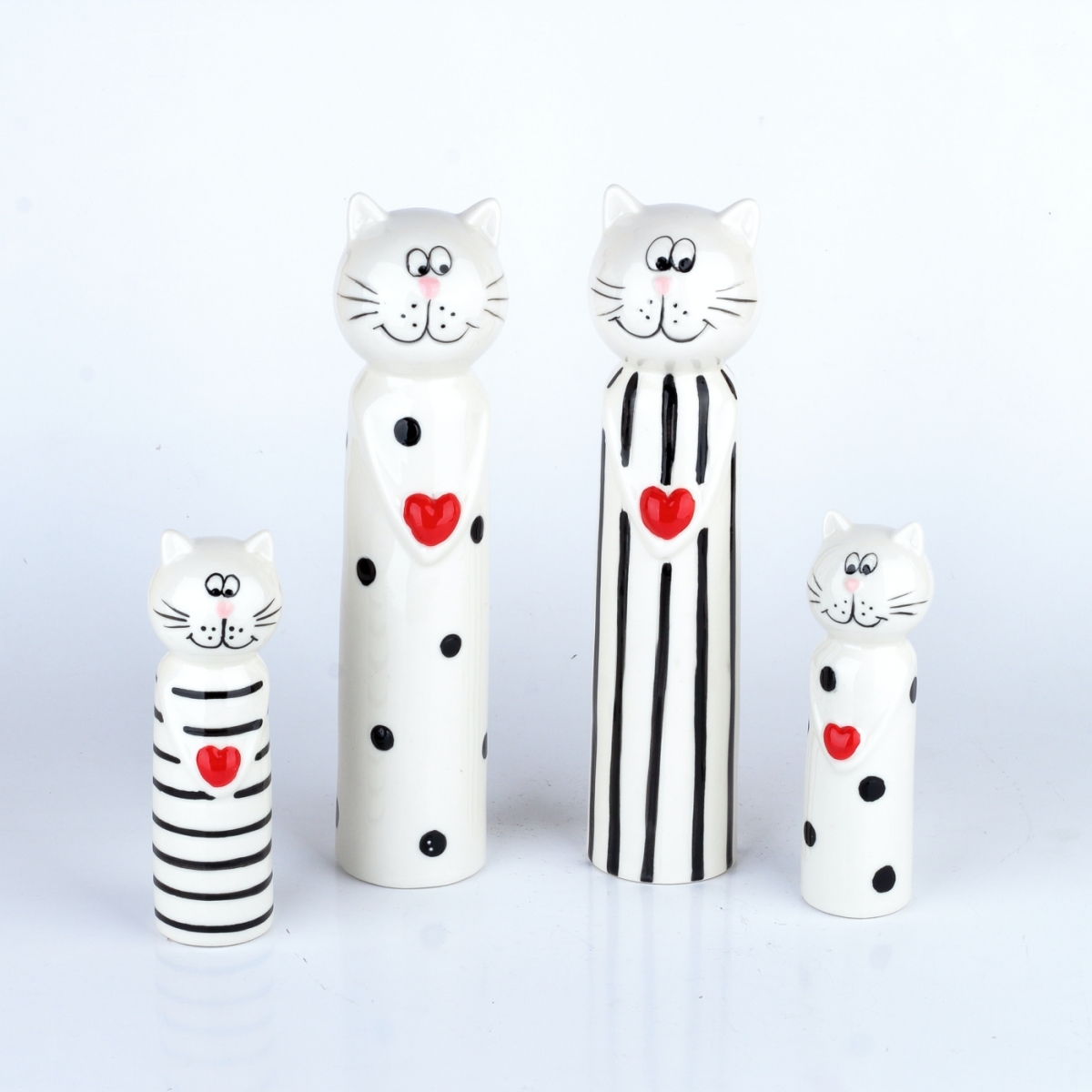 Dekoráciu pruhovaného kocúrika, môžete doplniť v rovnakej výške postavičkou mačiatkom s bodkami, alebo o 10cm vyššími postavičkami rodičia Micinky a Mourka.