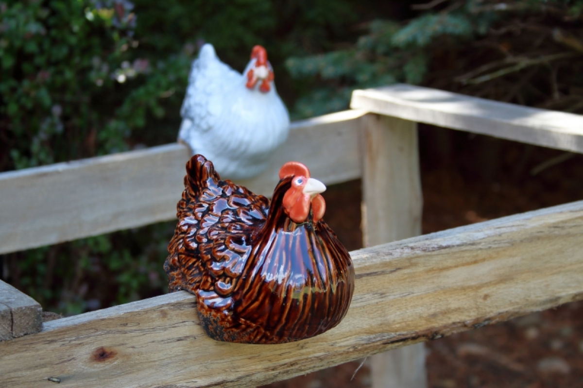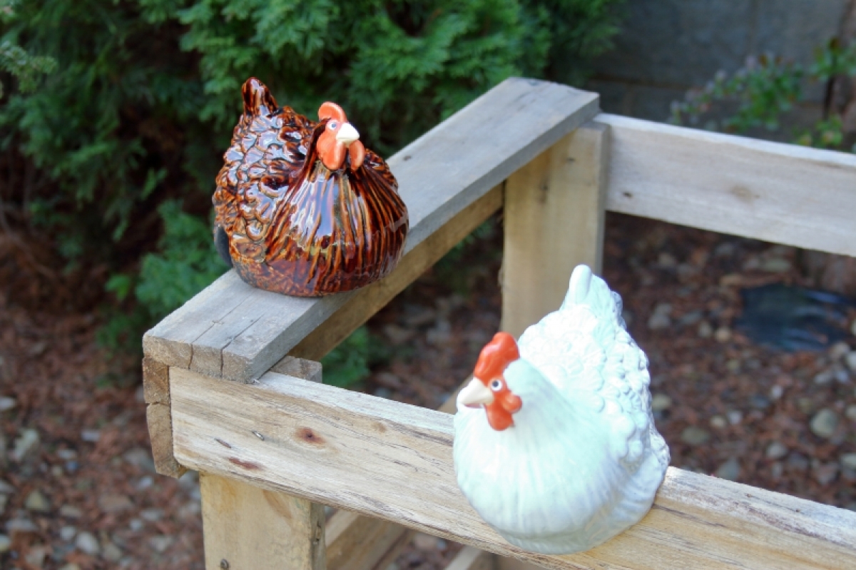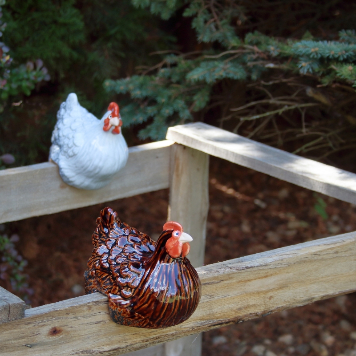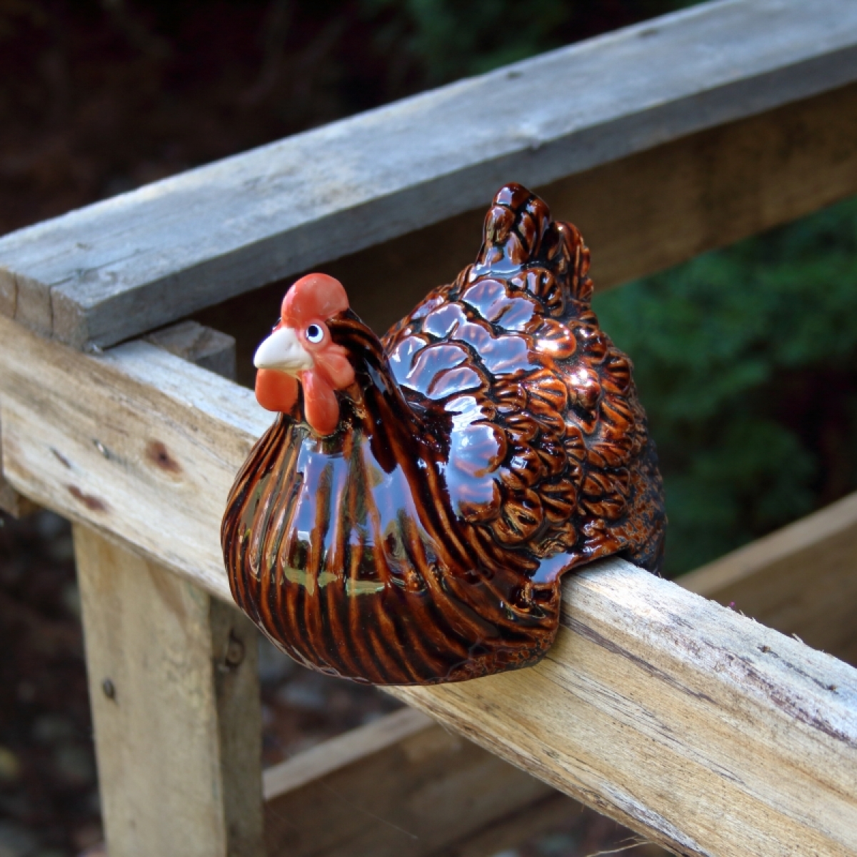 Dekorácia na záhradu má na spodnej strane výrez, vďaka ktorému môžete sliepočku posadiť trebárs na plot.