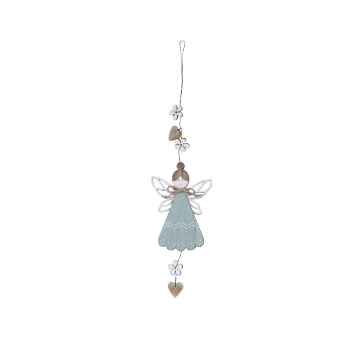 Dekorácia na zavesenie anjel s drôdikom vo svetle modrých šatách vnesie do vášho domova pokoj a pohodu.