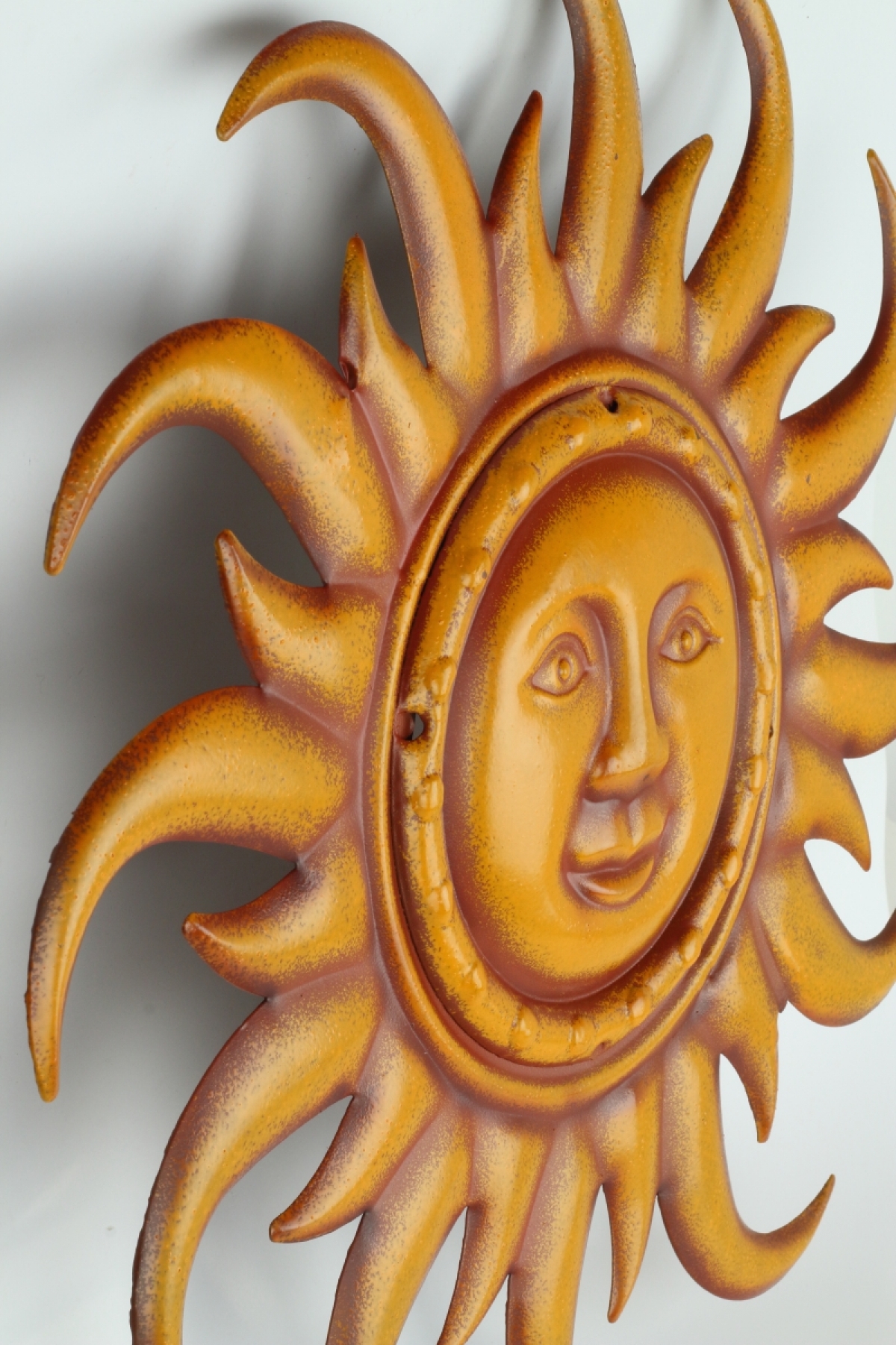 Dekorácia na stenu slnko je vylisované z plechu a má priemer lúčov 55cm.