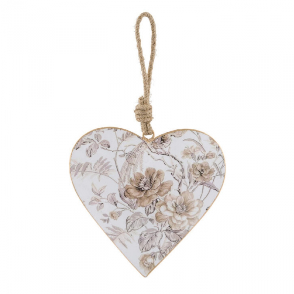 Dekorácia srdce na zavesenie s motívom kvetín v béžovej farbe