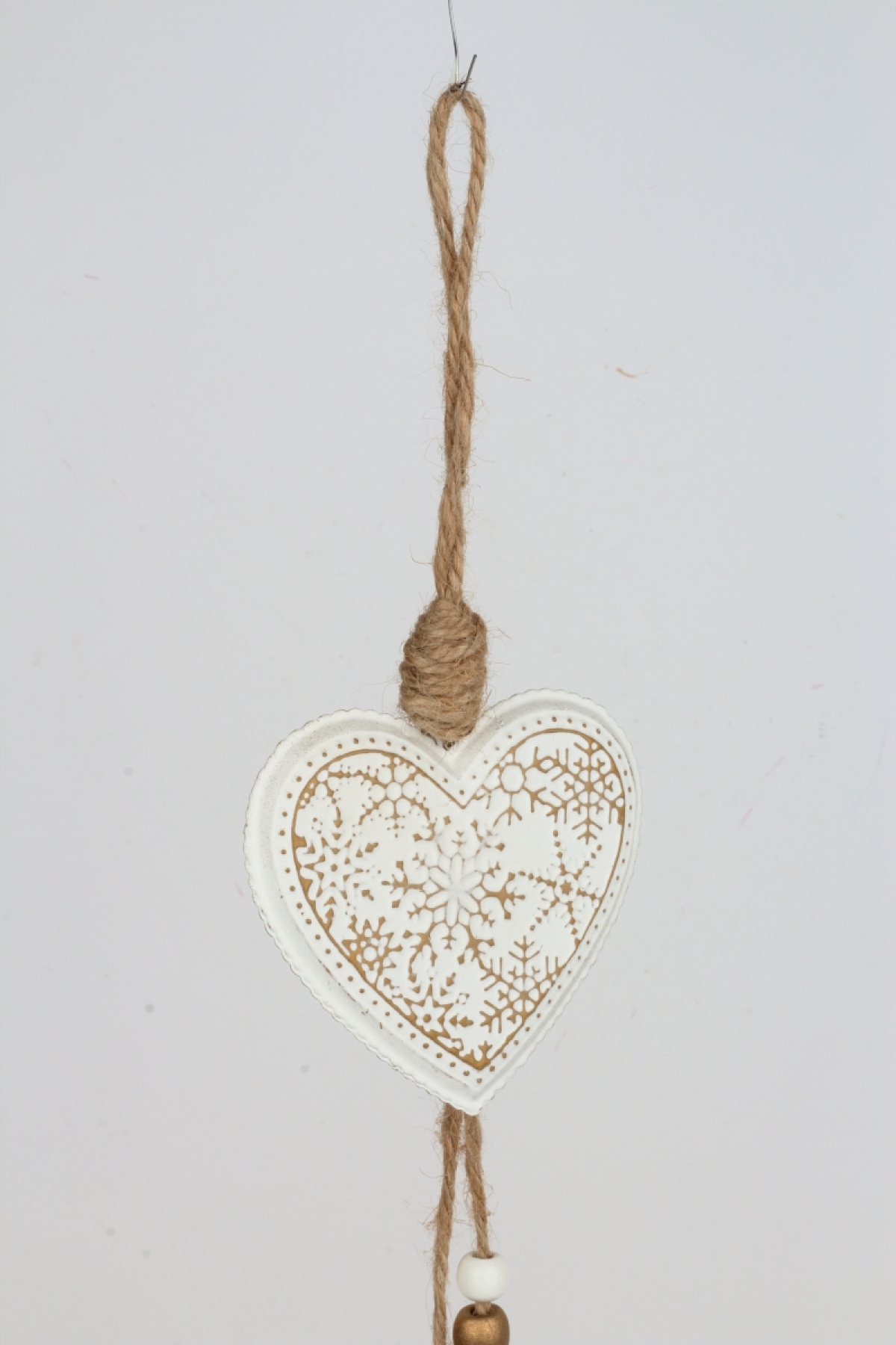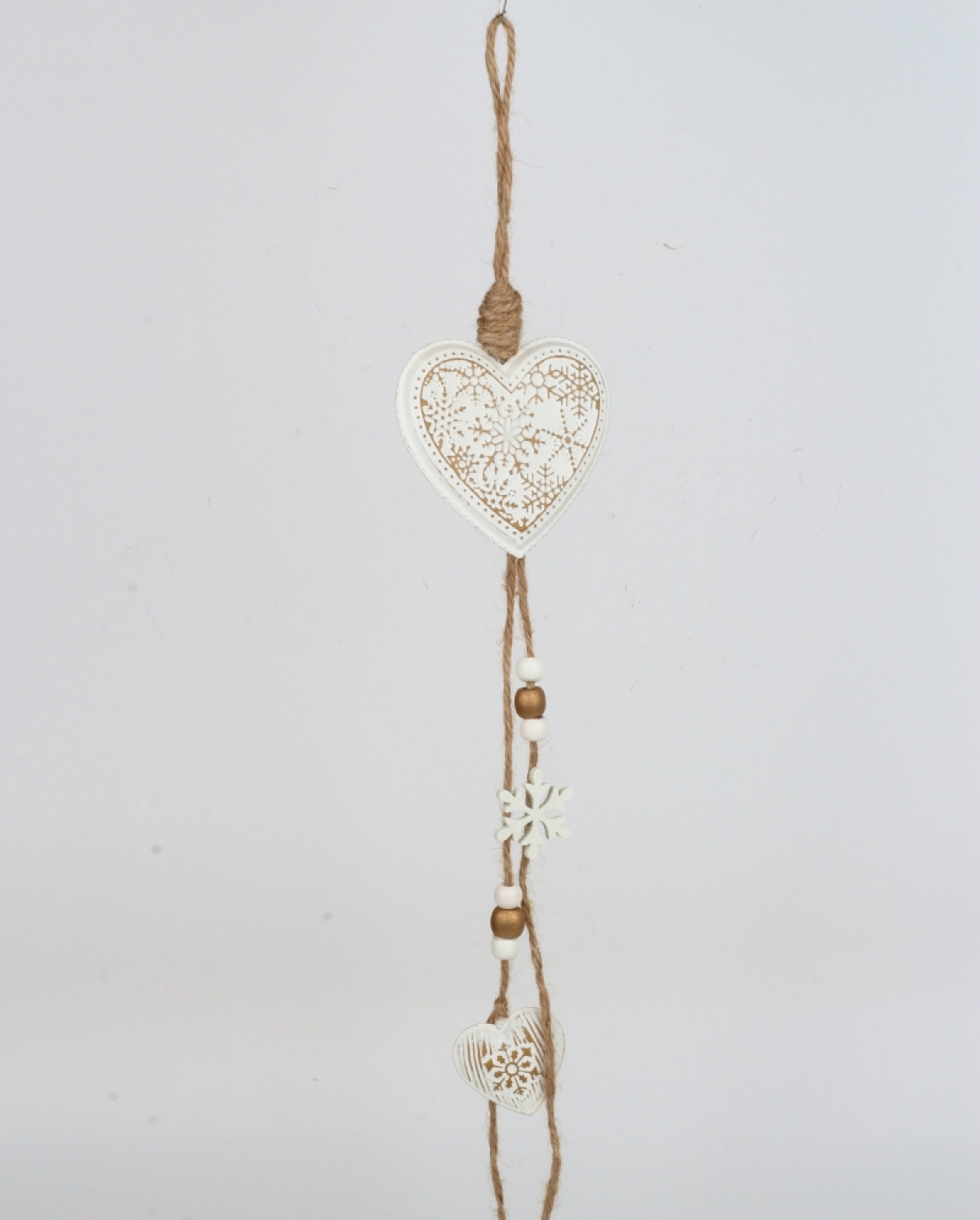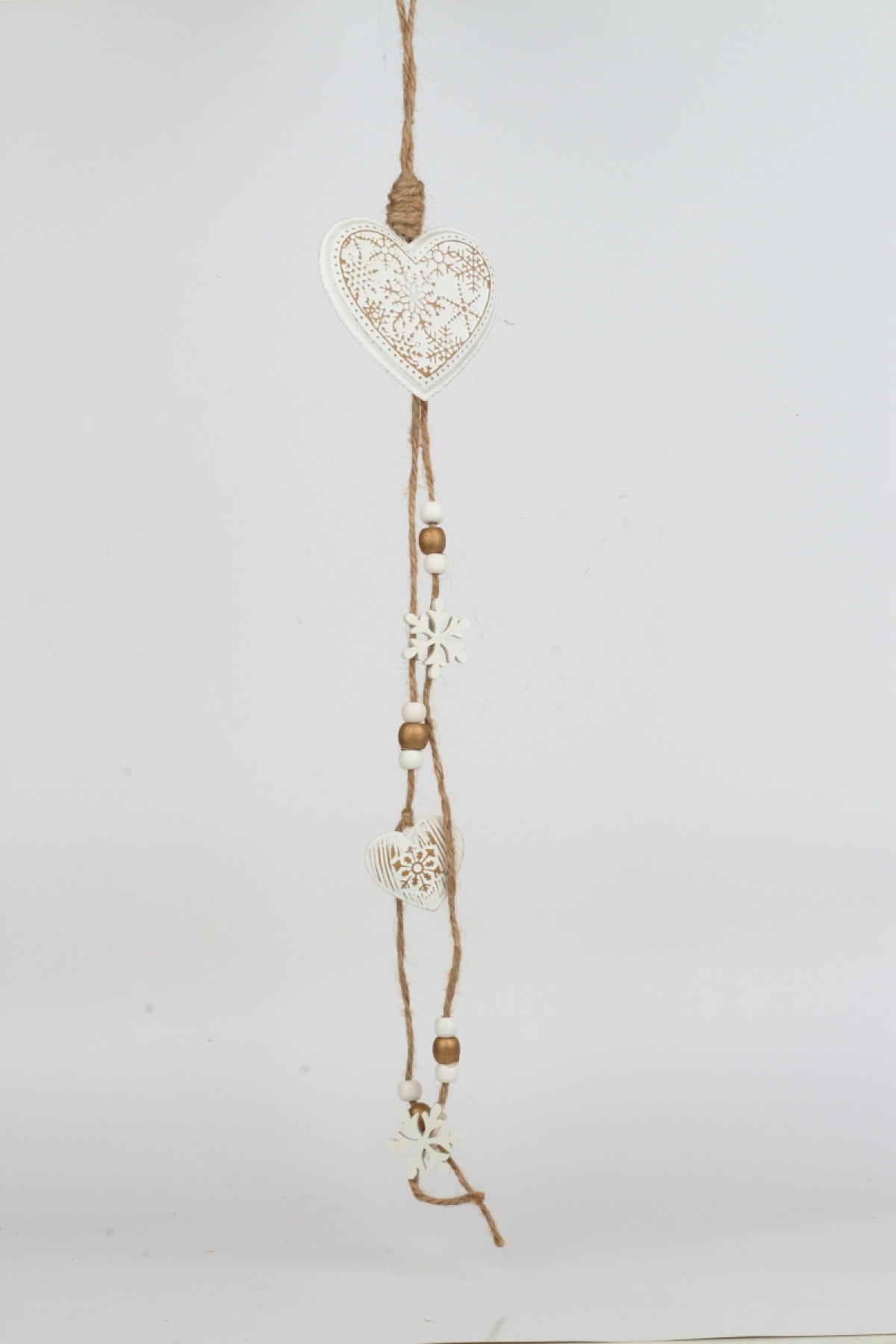 Srdiečko slúži ako závesná dekorácia. Má na sebe zavesené menšie srdiečko a vločky s korálkami. Celková dĺžka je 55 cm.