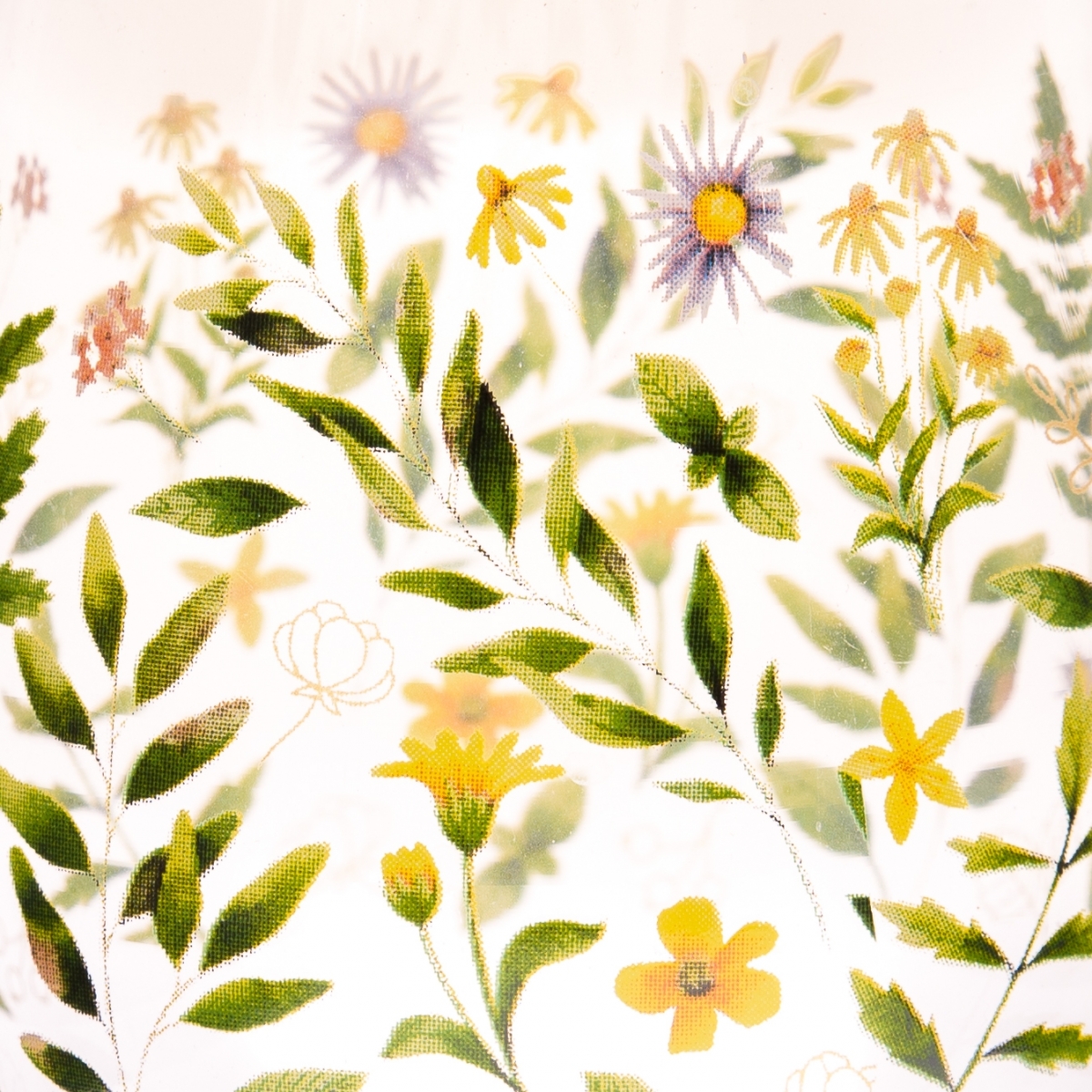 Dekorácia do kuchyne z kolekcie Lúčne kvety obsahuje veľké sklenené hrnčeky, maľované poháre, hrnčeky v tvare šálok na čaj, dózy s bambusovými viečkami rôznych objemov a maľovaný chalupársky džbán na vodu zo studne. Každý kúsok je ručne vyrobený pre najvyššiu kvalitu a autentickosť.