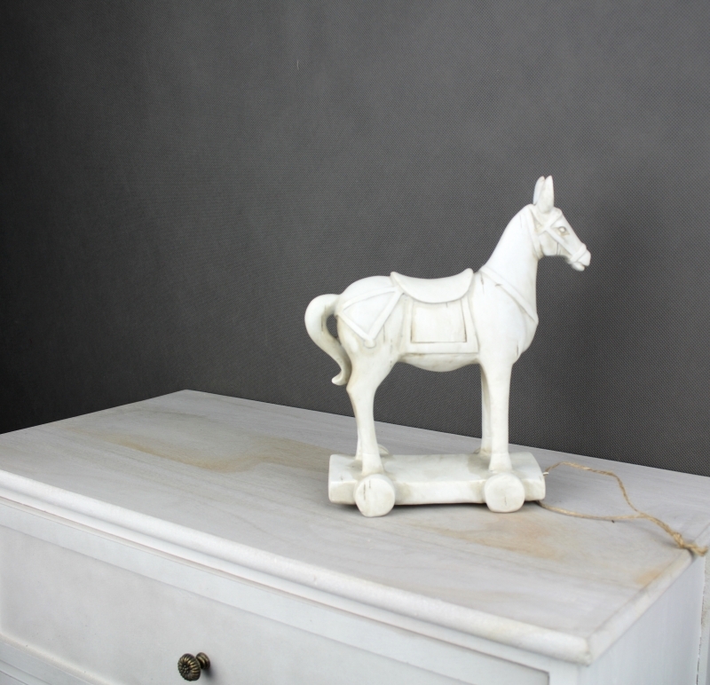 Koník je postavený na podstavci. Jedná sa o veľmi štýlovú bytovú dekoráciu.