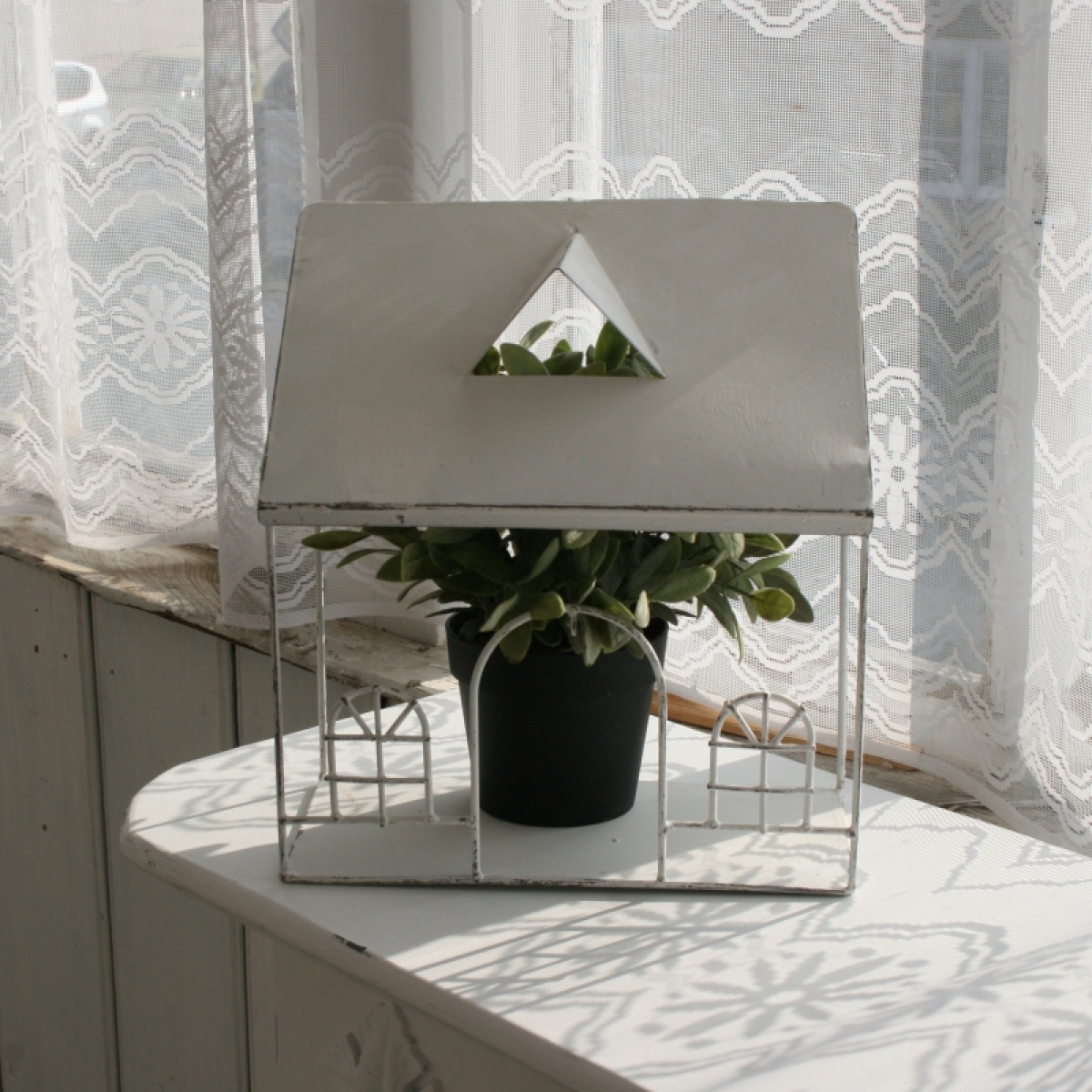 Dekoračný kovový domček 27x24x13cm môžete postaviť na komodu, alebo zavesiť na stenu. Budú mu pristane drobné dekorácie a spomienky z ciest (kamienky, mušličky atď.), Ale aj malá kvetina.