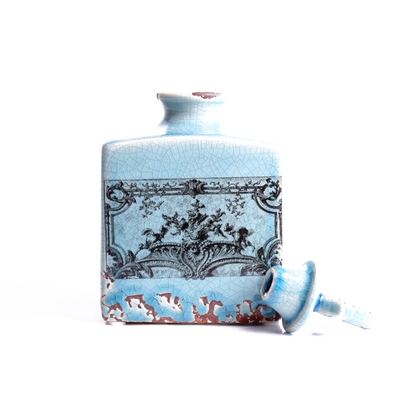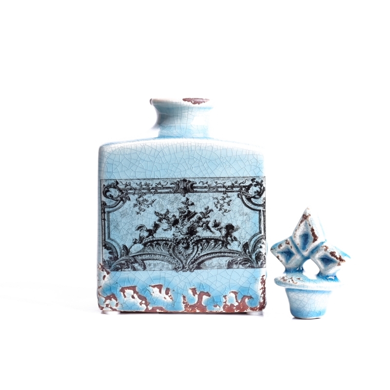 Bohaté zdobenie, glazúra s popraskaným vzhľadom a tyrkysová farba - to všetko spoločne pôsobia veľmi originálne a luxusne.