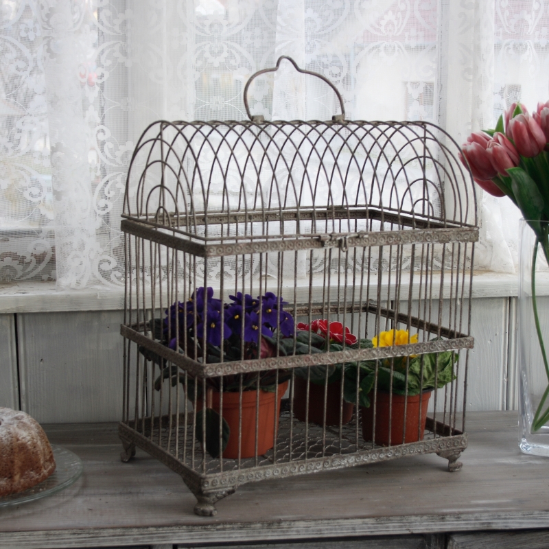 Dekoračné vtáčia klietka malá v imitácii starého kovu s patinou a hrdze pripomína práve nájdený kúsok na pôde starého stavení.