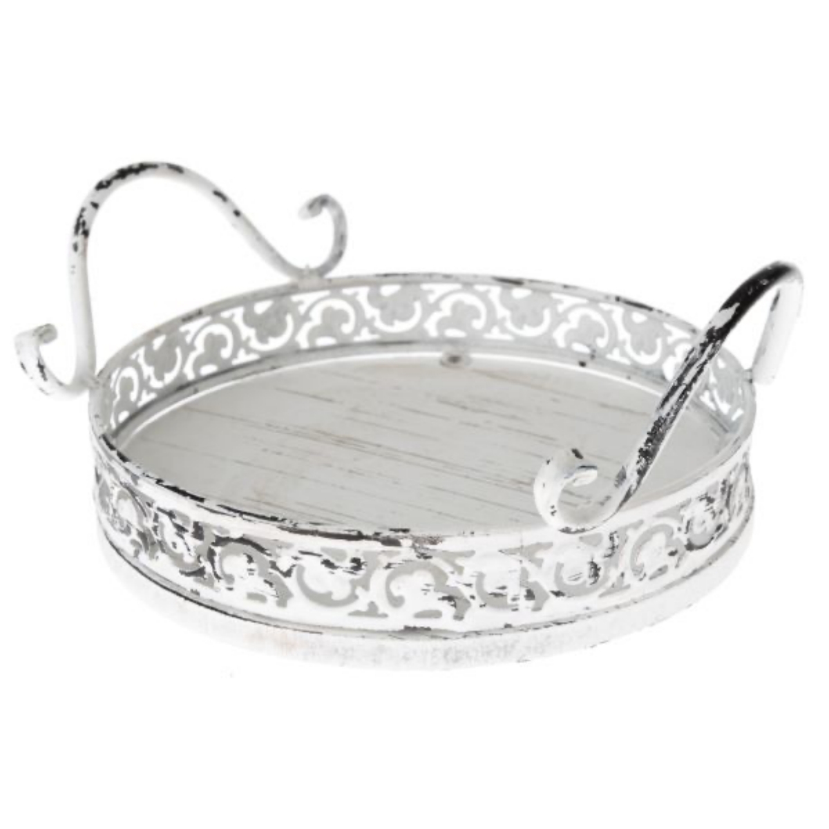 Dekoračný podnos kovový s ozdobnými kovovými ornamentmi na stranách a jemnou patinou môžete využiť na servírovanie alebo z neho vytvoriť aranžmán.