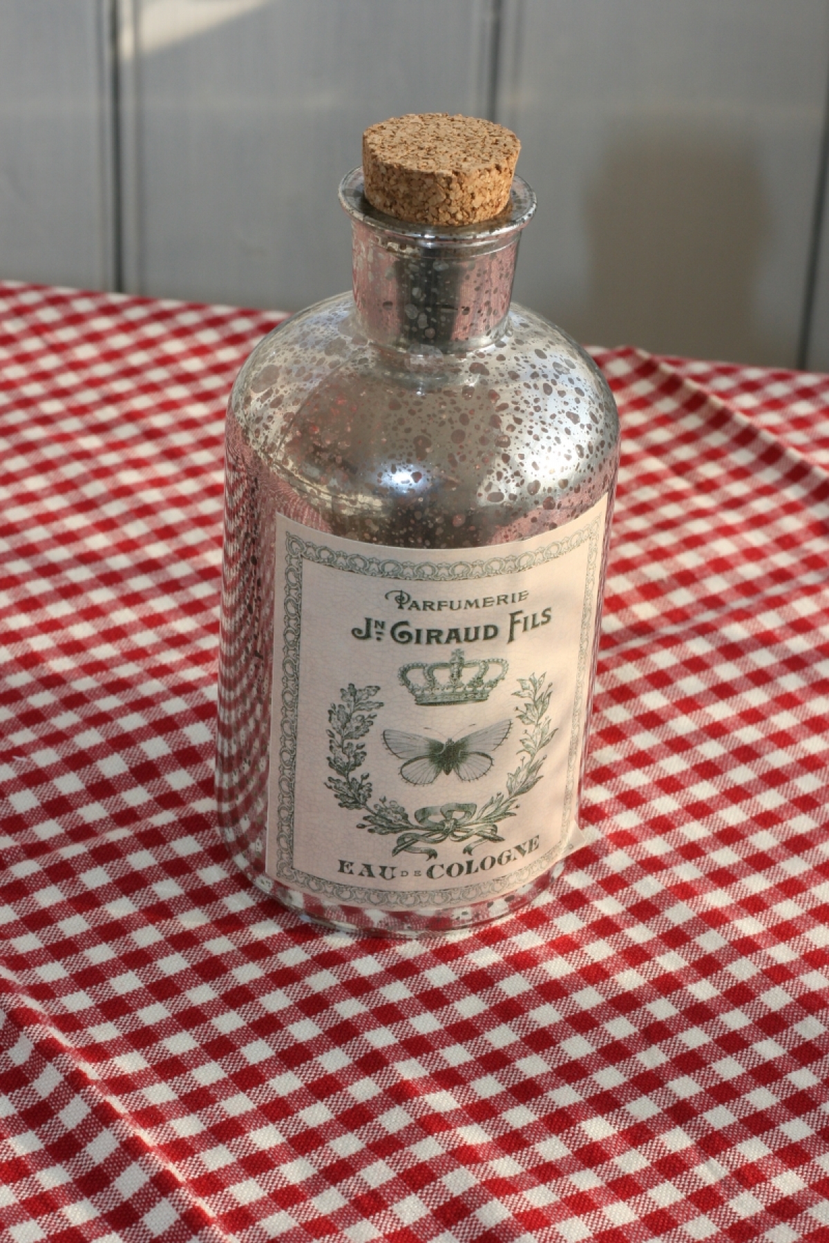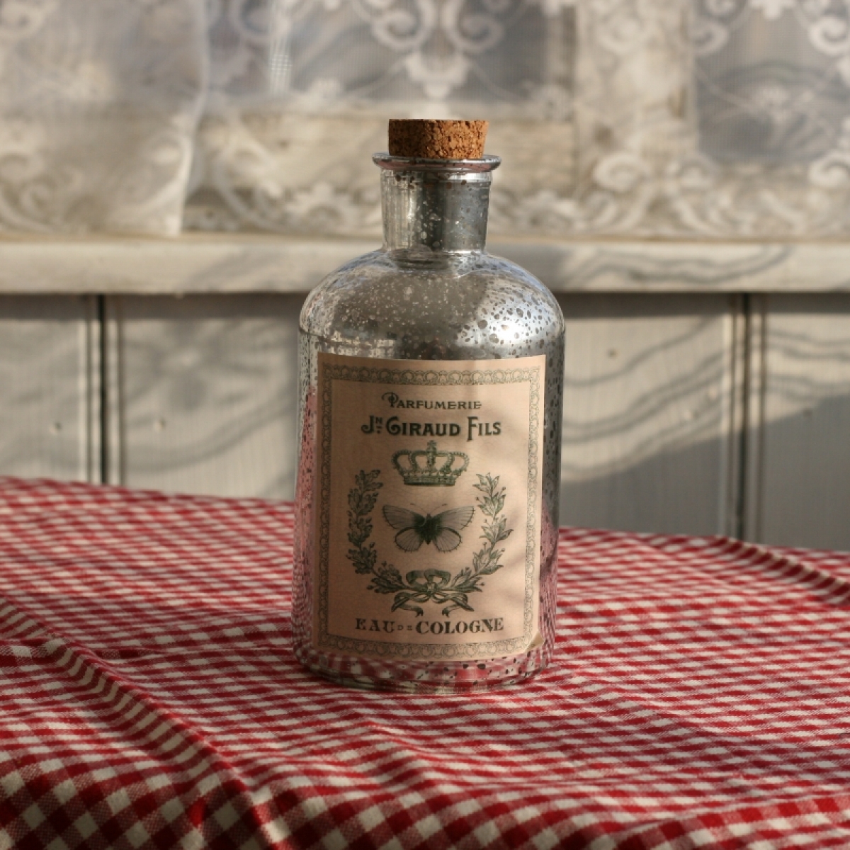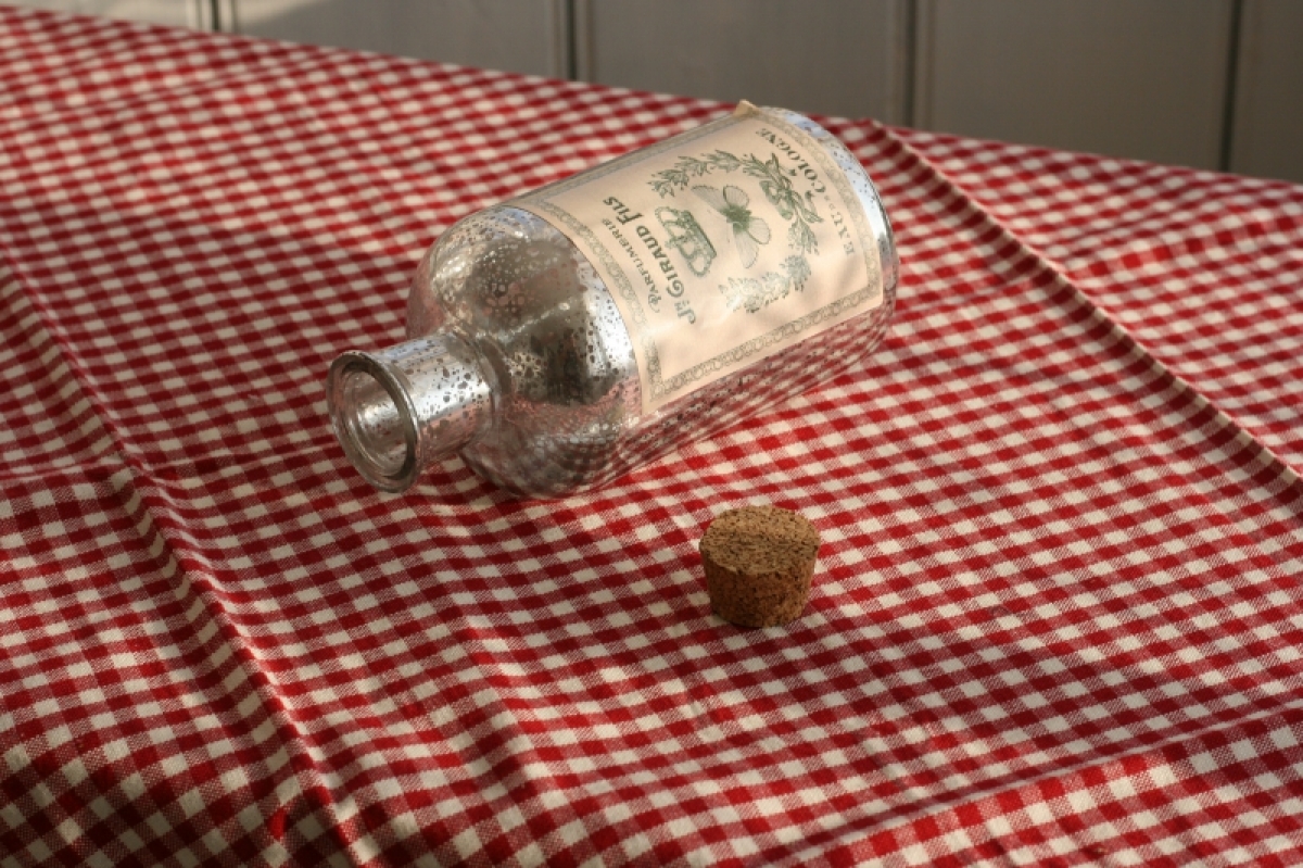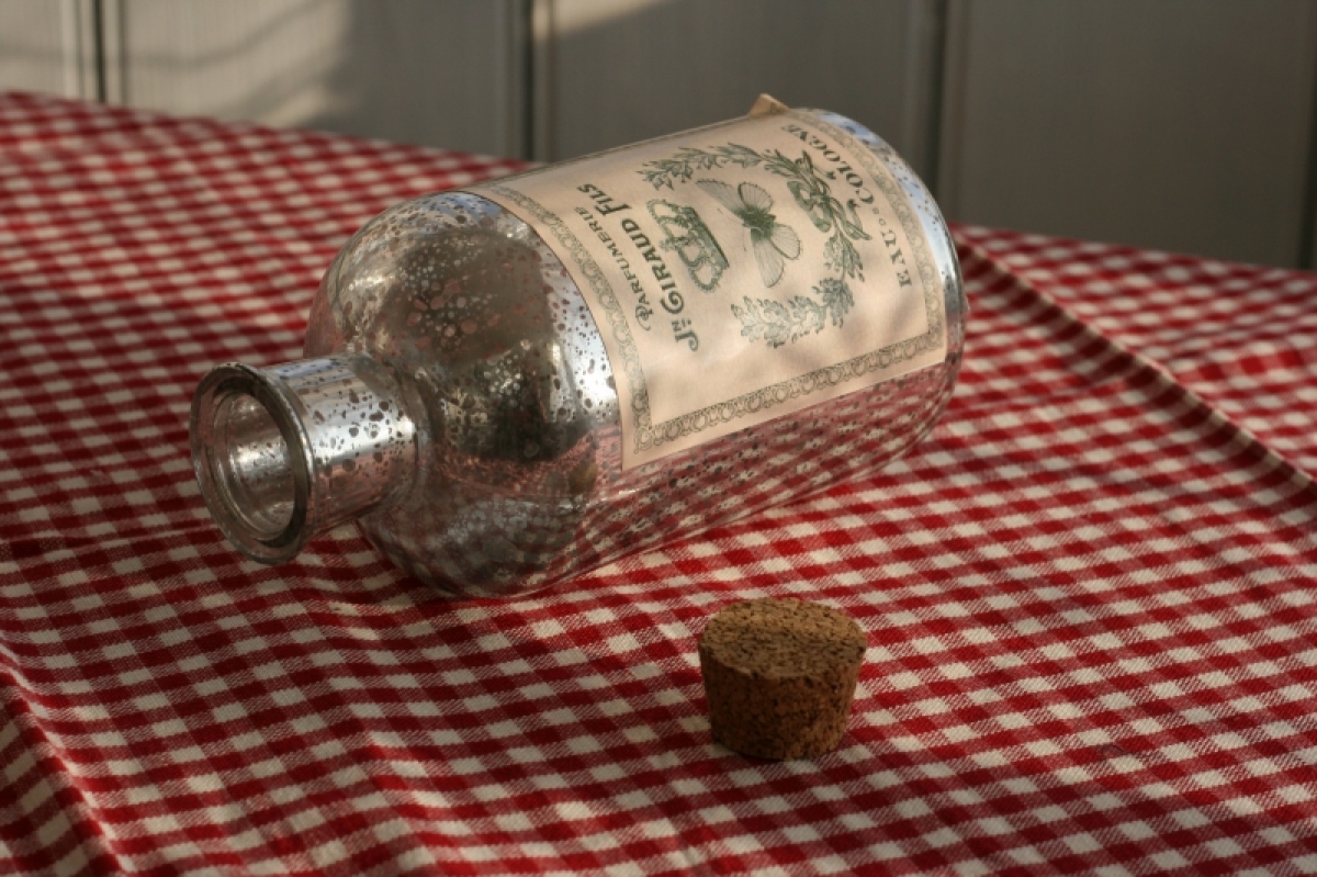 Veľmi originálna a dekoratívna postriebrená sklenená fľaša s korkovou zátkou.