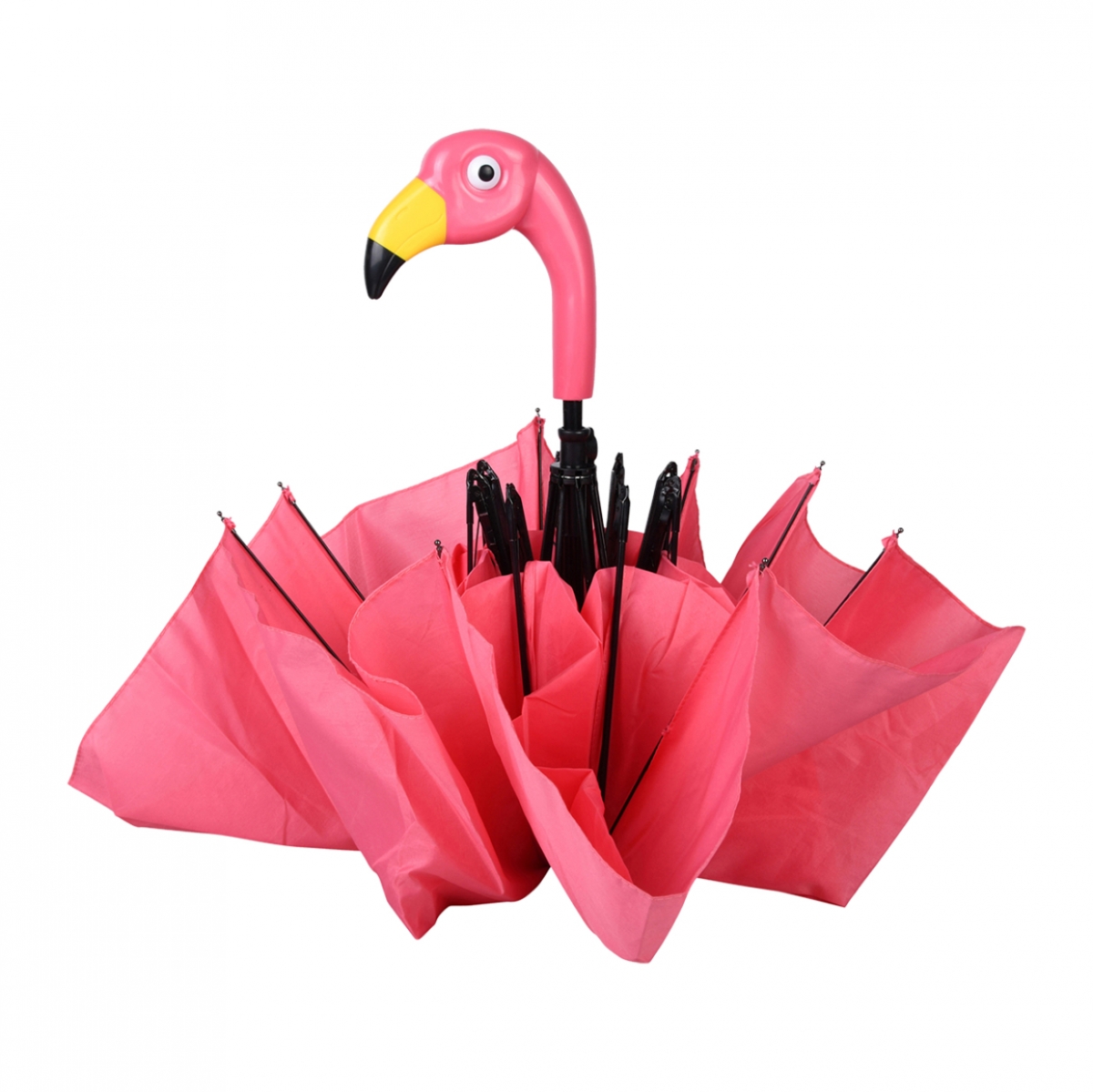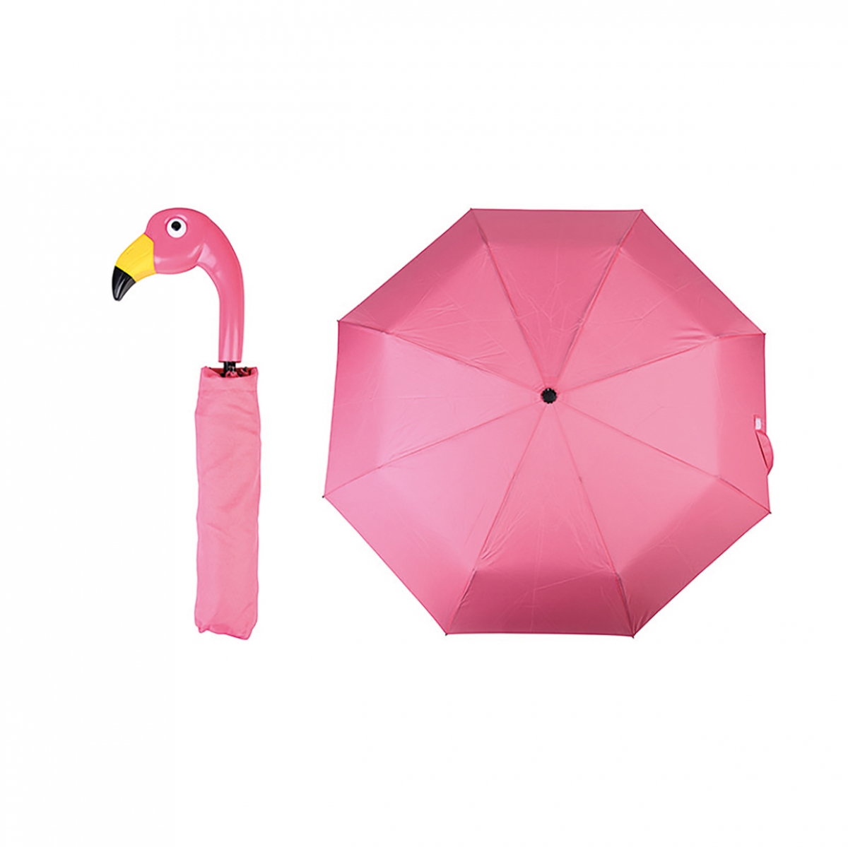 Skladací dáždnik v originálnom poňatí, zaujme svojim čistým dizajnom. Jasne ružová strecha a čierna kovová konštrukcia, sú doplnené madlom, ktoré má podobu hlavy plameniaka. Obľúbený motív iste poteší dievčatká aj ženy, preto je vhodný aj ako darček.