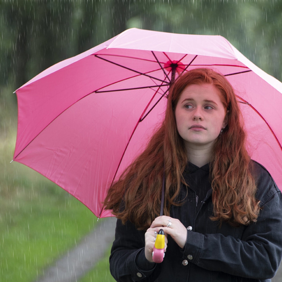 Výhodou dáždnika je jeho skladnosť. Možno ho zložiť do malej veľkosti a mať ho tak vždy v kabelke, či batohu, pre prípad nečakanej prehánky. Súčasťou balenia je aj ochranný obal v ružovej farbe.