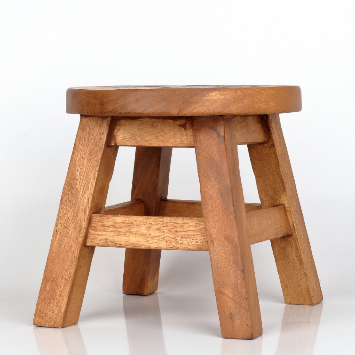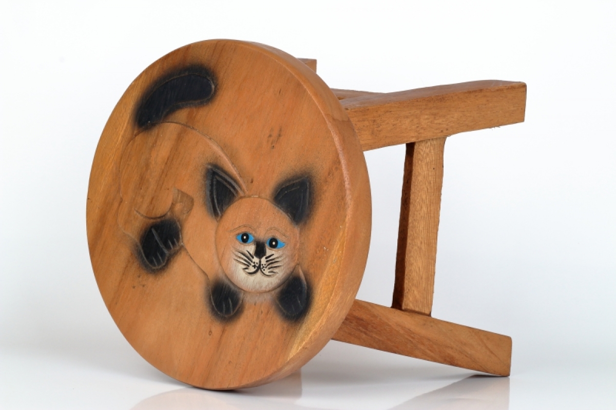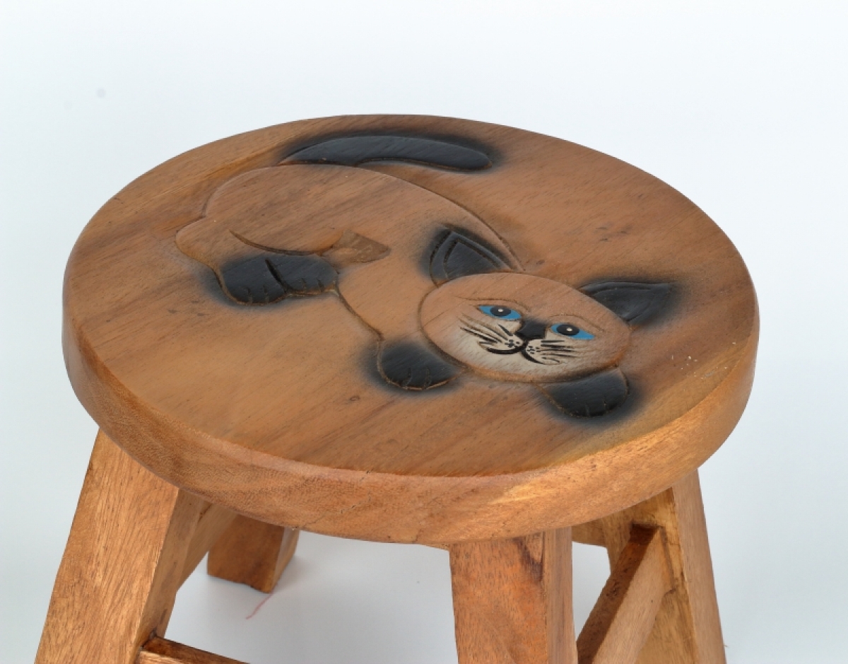 Rozmery: výška cca 26cm, podesta nôžok o veľkosti 25x25cm (priemer nesúmerného sedadla, ktorý ovplyvňuje tvar vyrezávaného motívu, je 26-30cm)