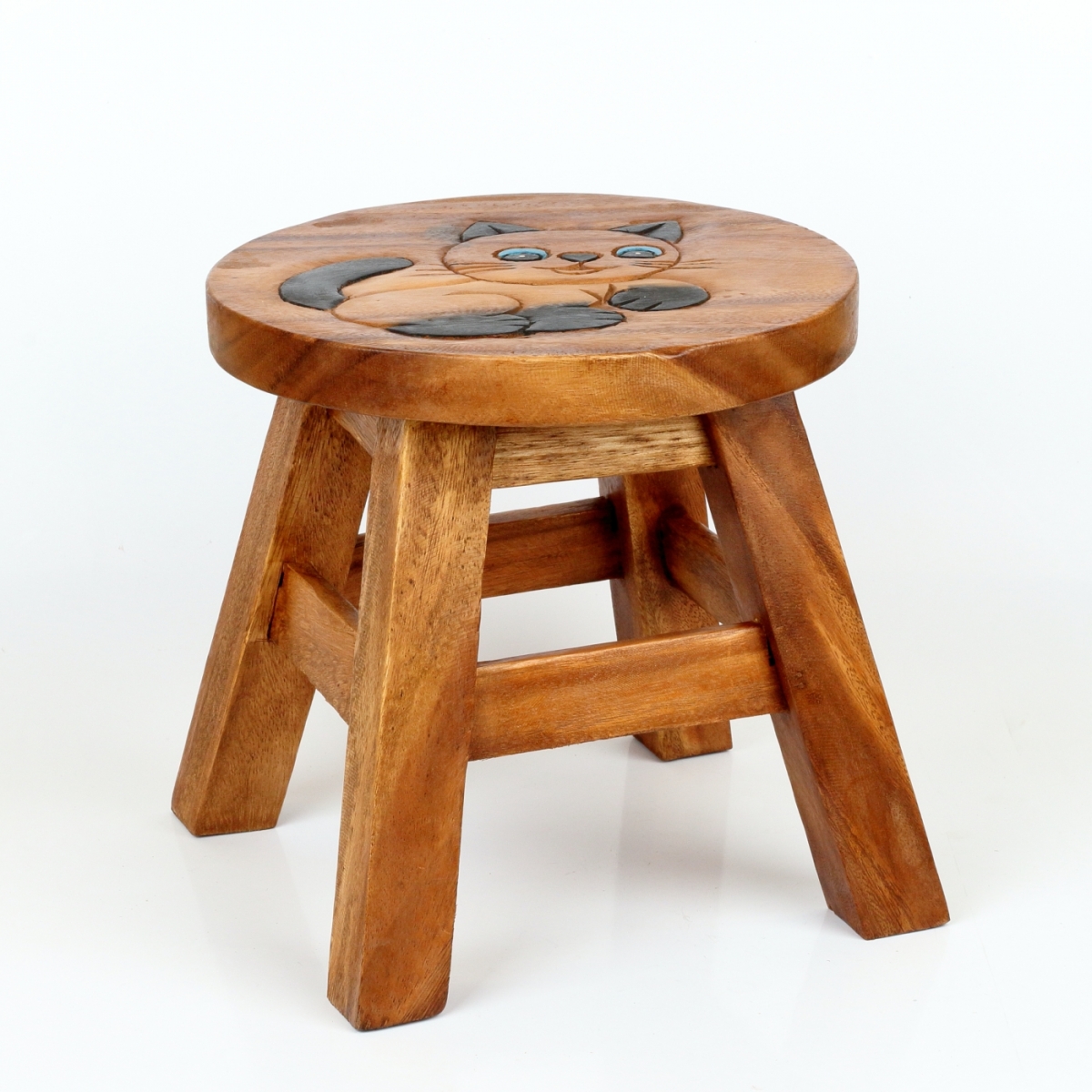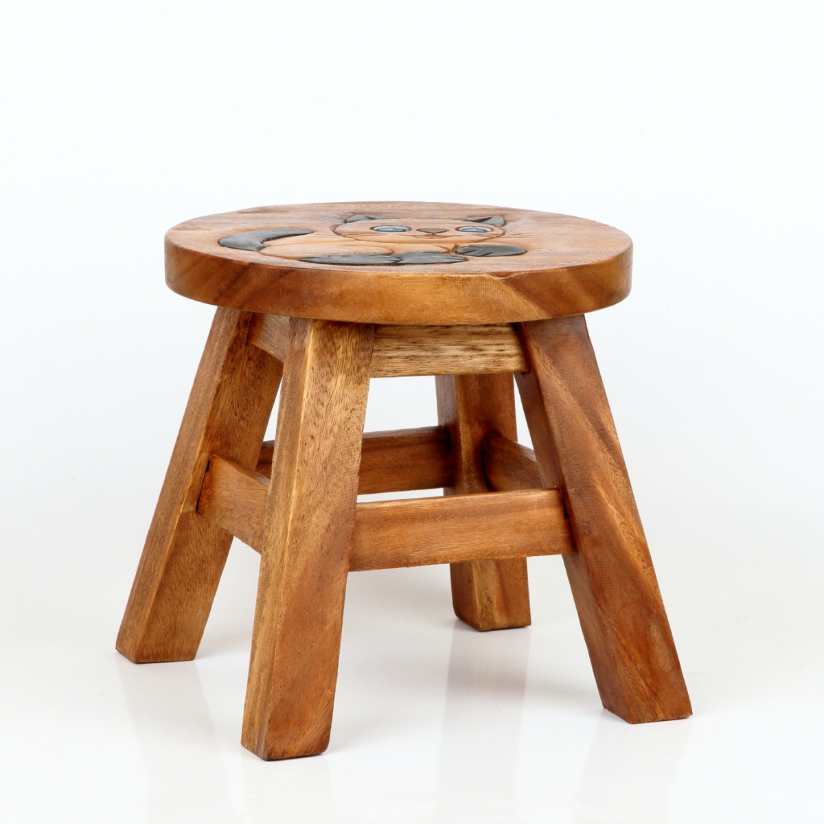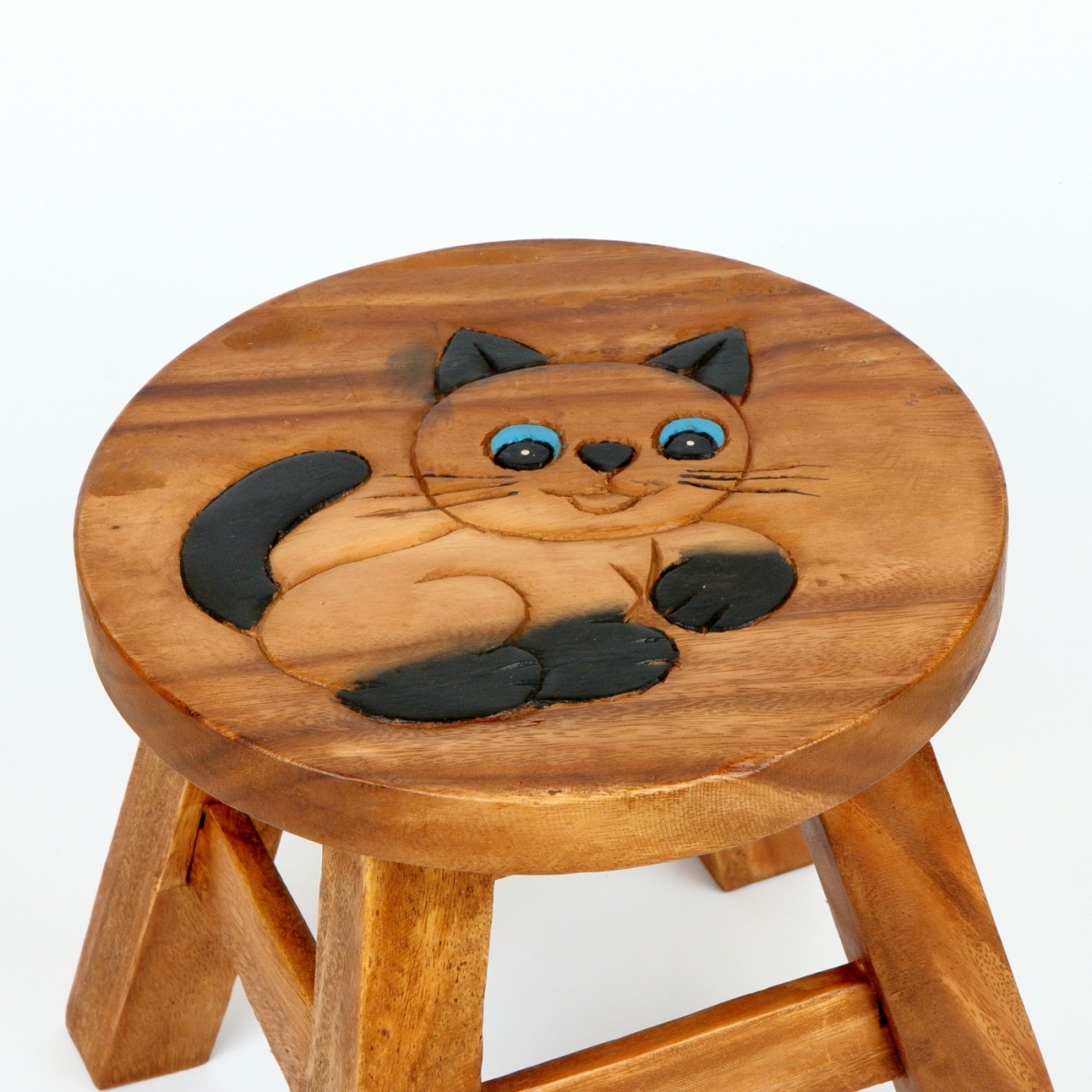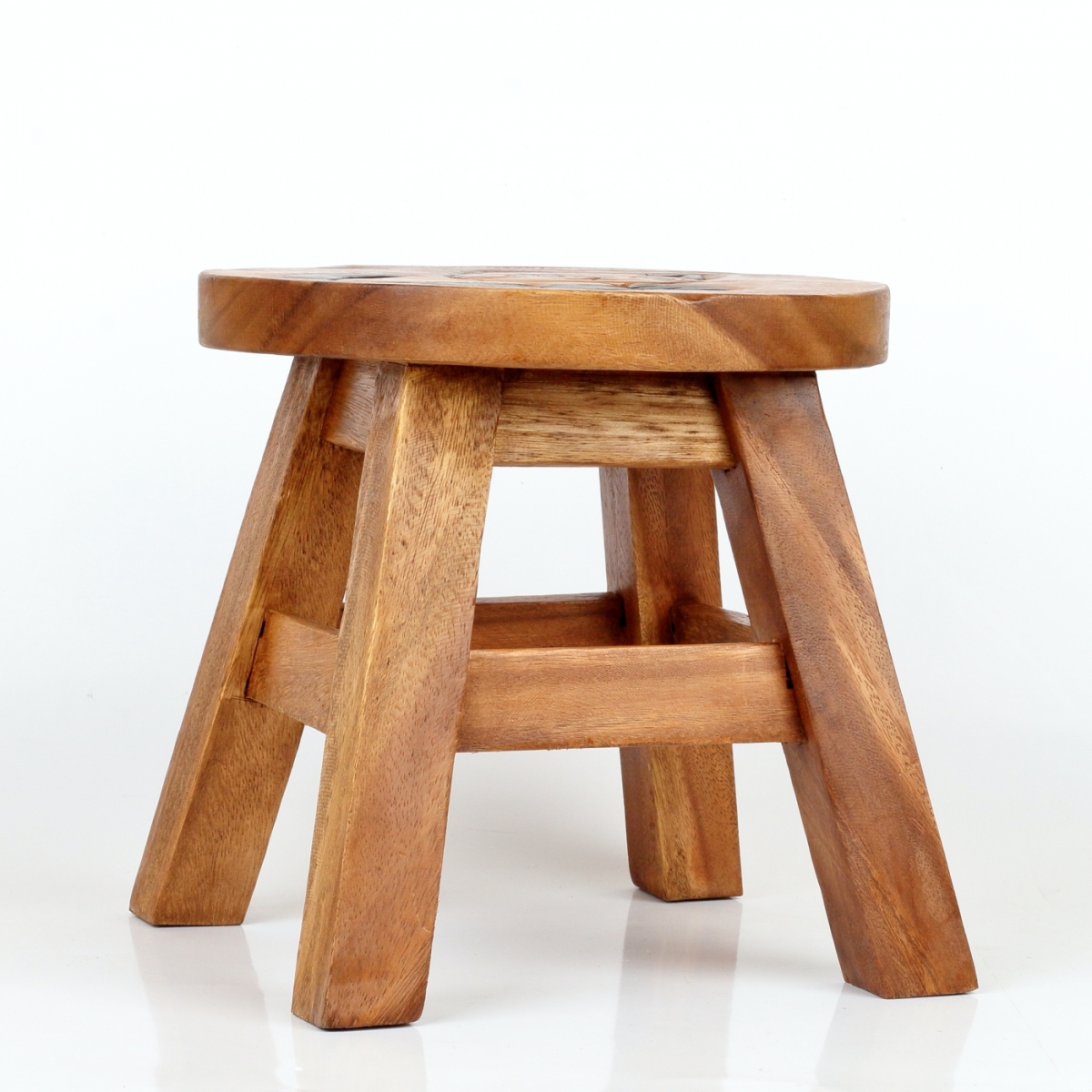 Rozmery: výška cca 26cm, podesta nôžok o veľkosti 25x25cm (priemer nesúmerného sedadla, ktorý ovplyvňuje tvar vyrezávaného motívu, je 26-30cm)