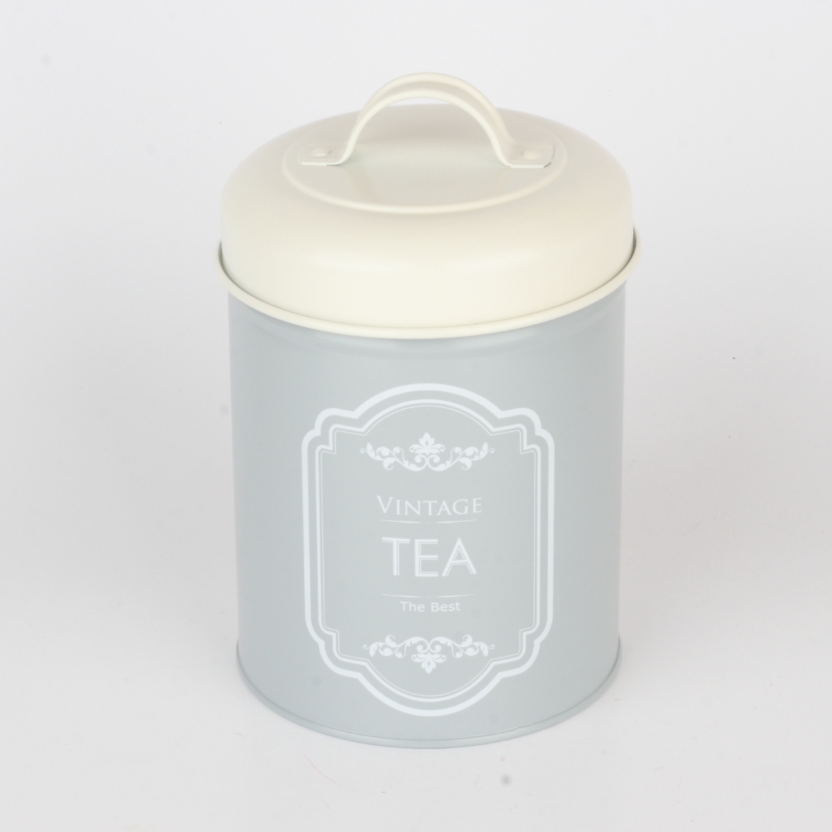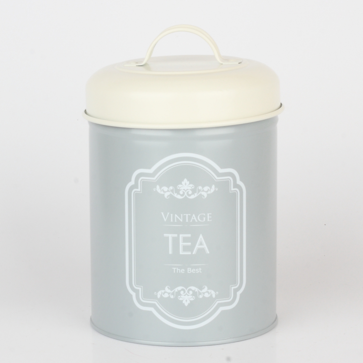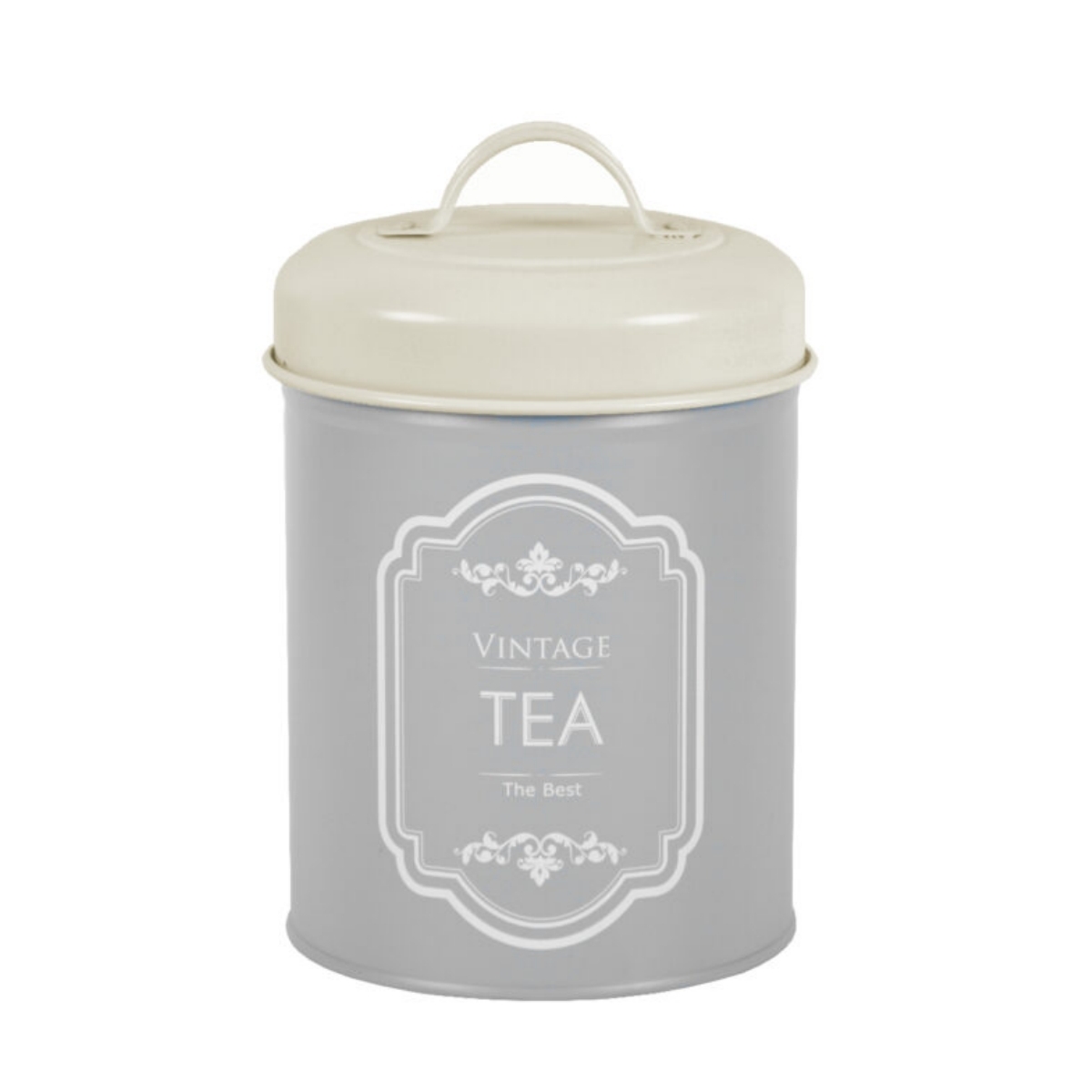 Dóza na čaj šedá VINTAGE 13cm z elegantnej vintage kolekcie kuchynských dóz na potraviny, ktorú si vďaka jej jednoduchosti a decentnosti zamilujete. Kolekcia, ktorá sa hodí snáď do každej kuchyne a dokáže byť nenápadná a napriek tomu neprehliadnuteľná.