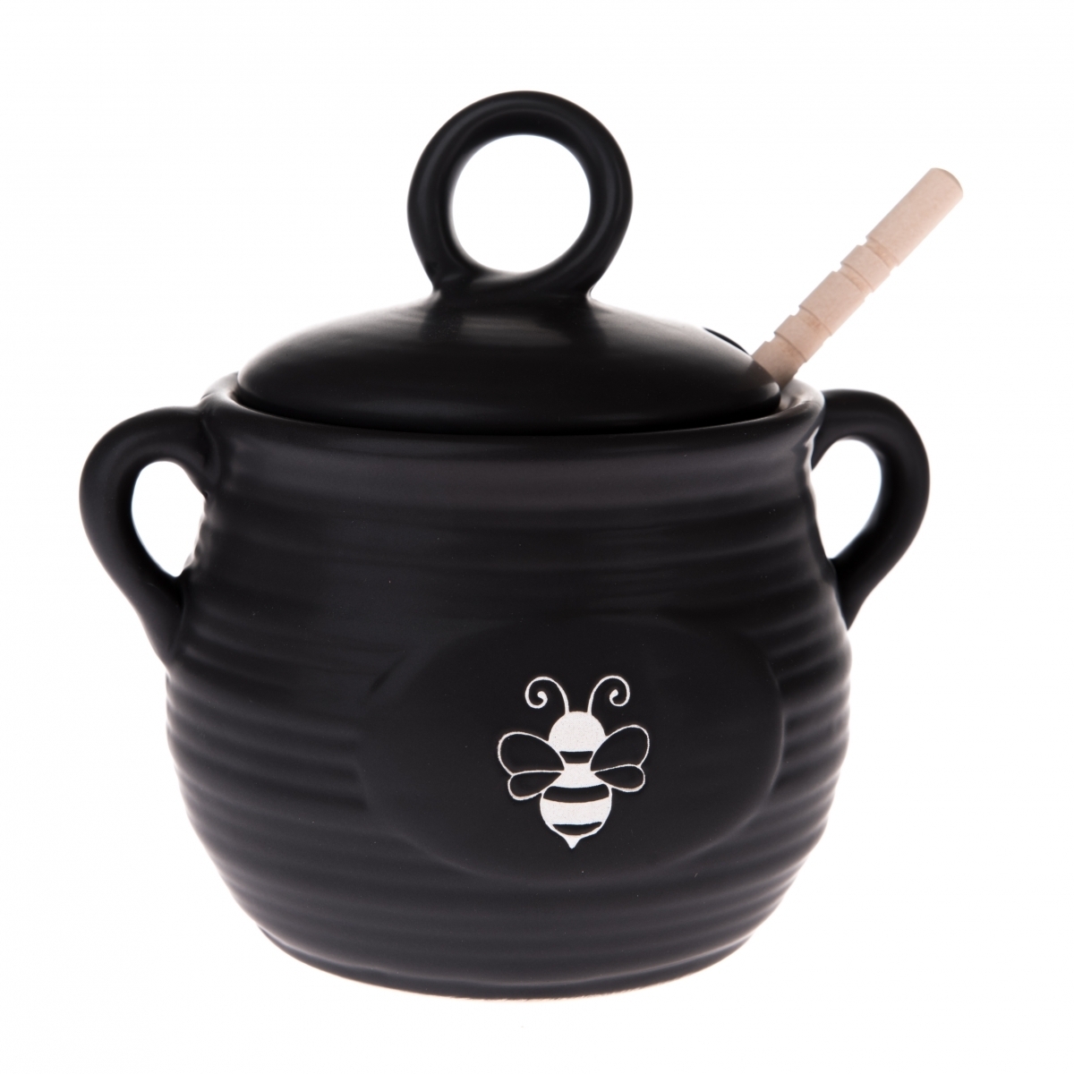 Dóza na med v elegantnom čiernom prevedení s motívom bielej včielky bude zdobiť vašu kuchyňu a zároveň bude praktickým pomocníkom pre všetkých milovníkov medovej pochúťky.