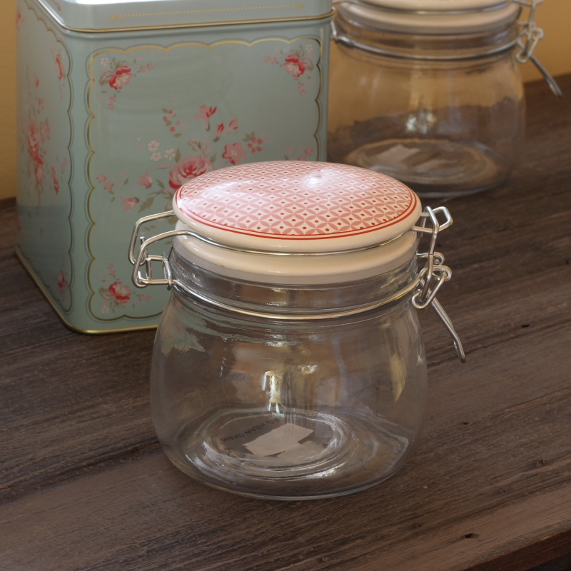 Dóza na potraviny Abelone raspberry 500ml z originálnej kolekcie Abelone kombinované z jemnej pastelovo ružovej farby, červenej farby a kvetinových vzorov typických pre Green Gate.