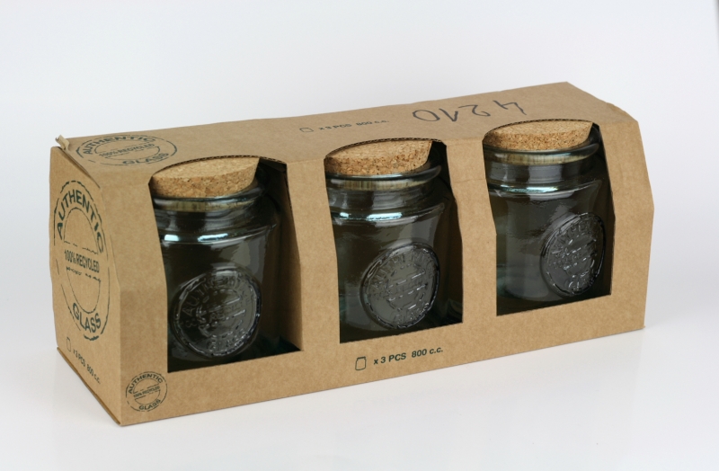 Dózy sú vyrobené zo 100% recyklovaného liateho skla v španielskej sklárni San Miguel. V rovnakom dizajne nájdete v ponuke veľa ďalších doplnkov do kuchyne.