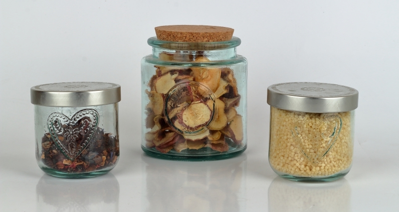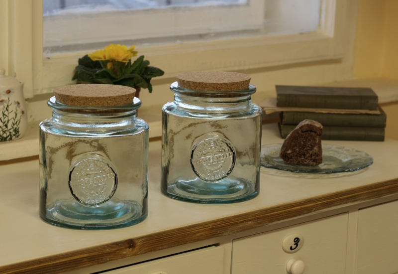 Dózy sú vyrobené zo 100% recyklovaného liateho skla v španielskej sklárni San Miguel. V rovnakom dizajne nájdete v ponuke veľa ďalších doplnkov do kuchyne. Môžete tak štýlovo vyriešiť ukladanie potravín a zároveň vyladiť kuchyňu k dokonalosti.