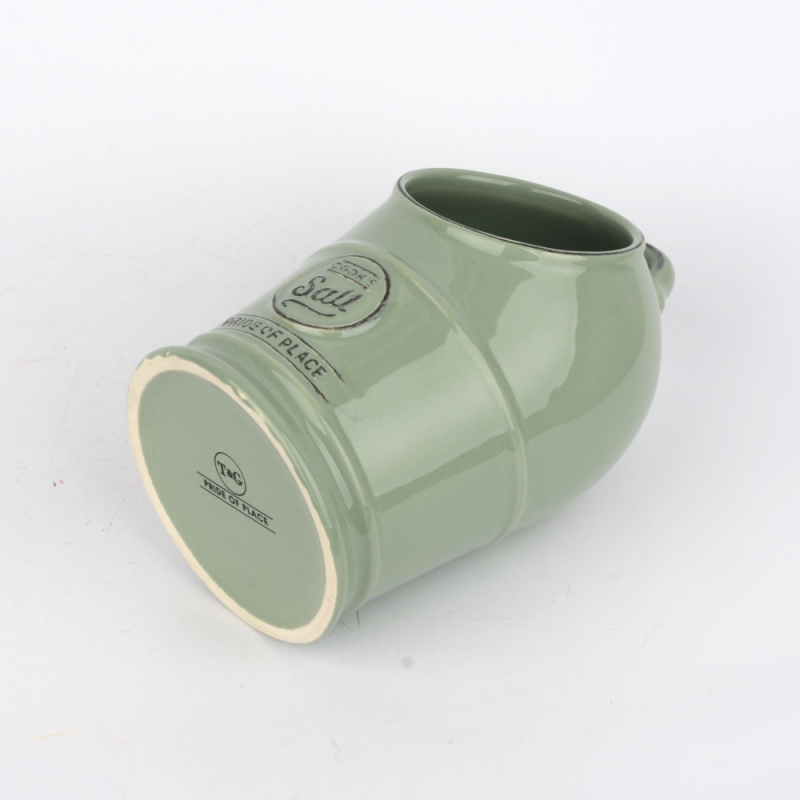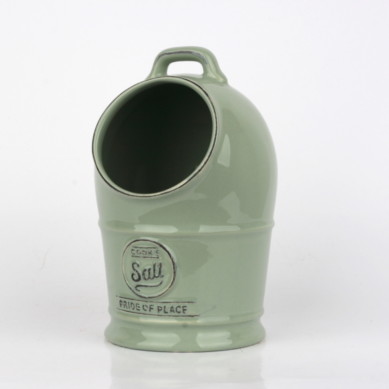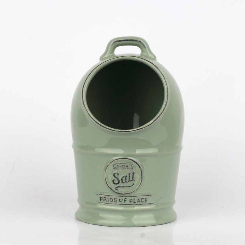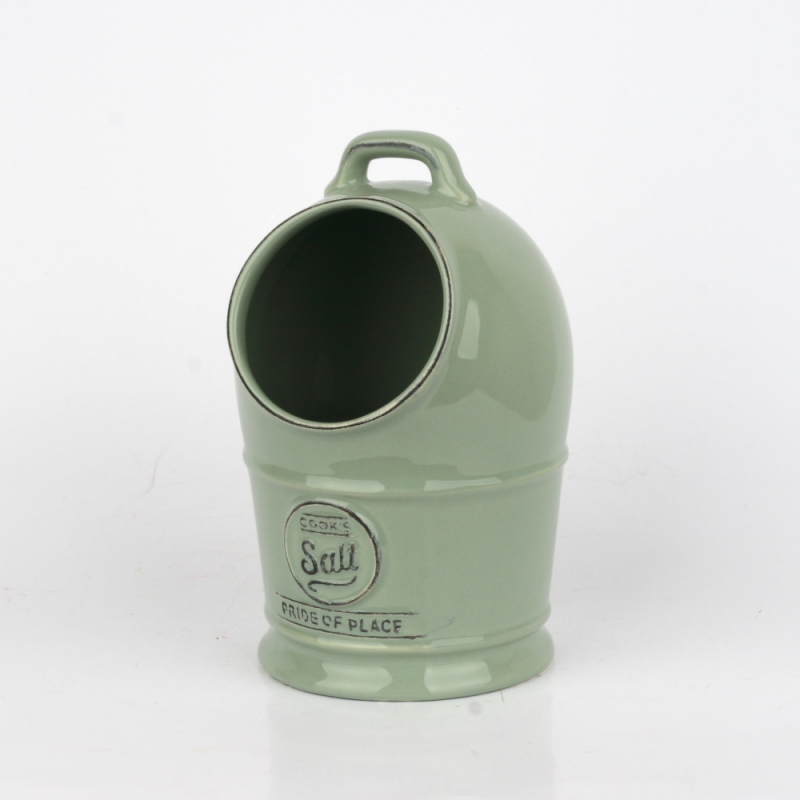 Dóza na soľ Pride of Place zelená 19cm v olivových tónoch s otlčeným rohmi skvele zapadne do vidiecky ladené kuchyne.